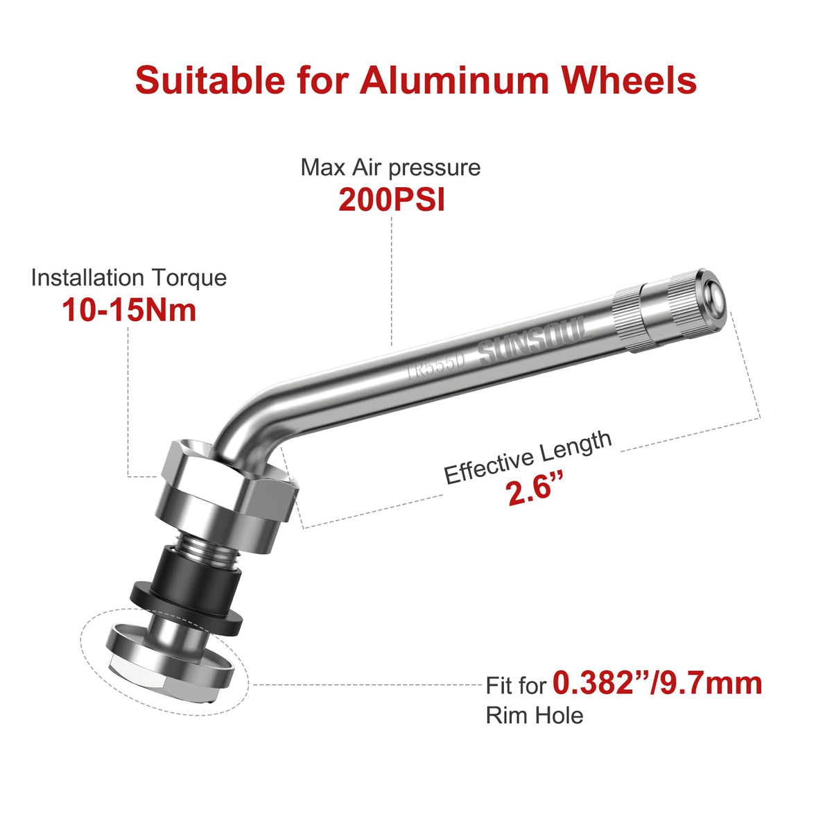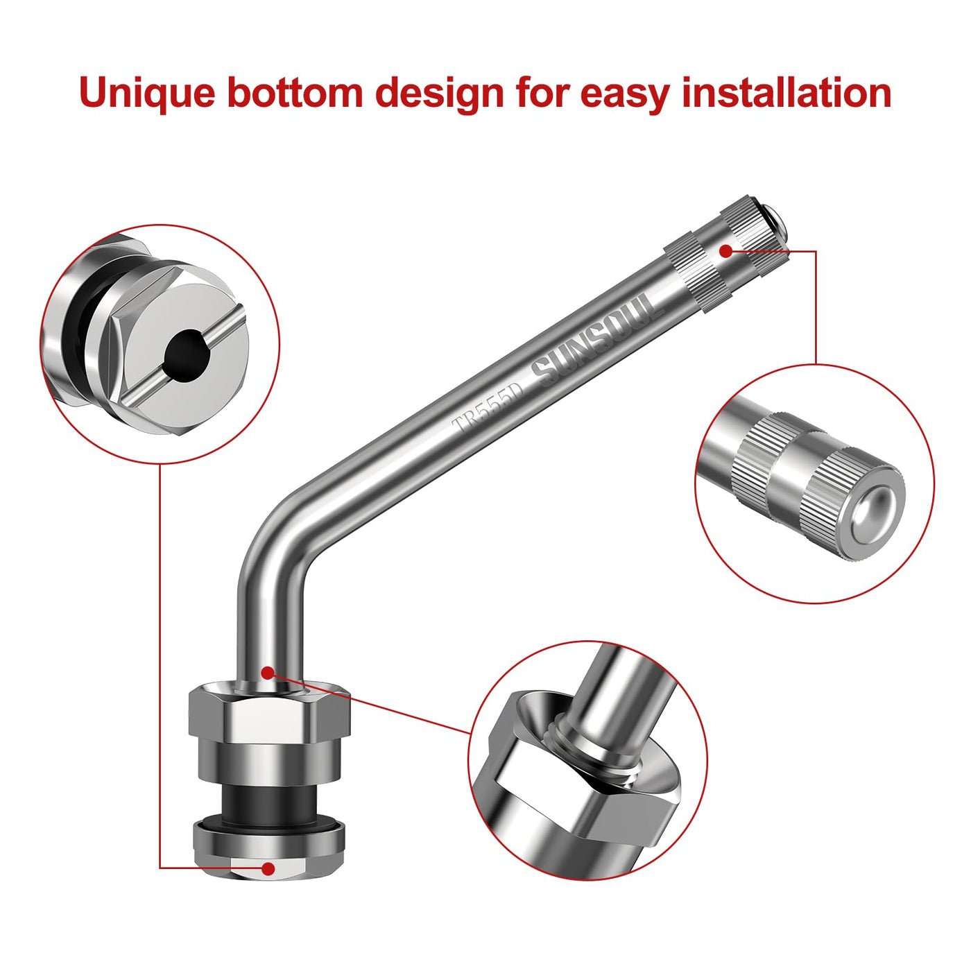 Sunsoul Tr555D 10Pcs 60 Degree Bend Truck Tire Valve Stems, Compatible With 22.5In 24.5In Aluminum Wheels With 9.7Mm Valve Holes