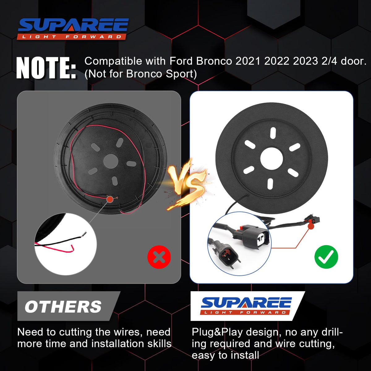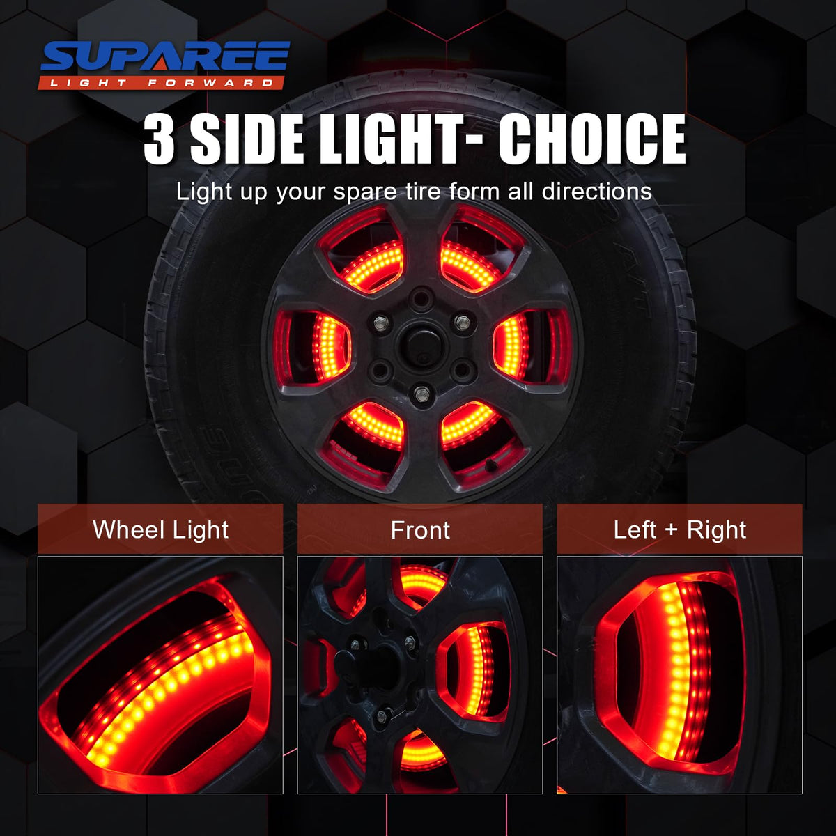 SUPAREE Spare Tire Brake Light for 2021-2024 Fo-rd Bronco,400PCS LED Super Bright 3rd Third Brake Light,3-Sided Bright Red High-Mounted Brake Light,Plug-N-Play Rear Wheel for Fo-rd Bronco Accessories