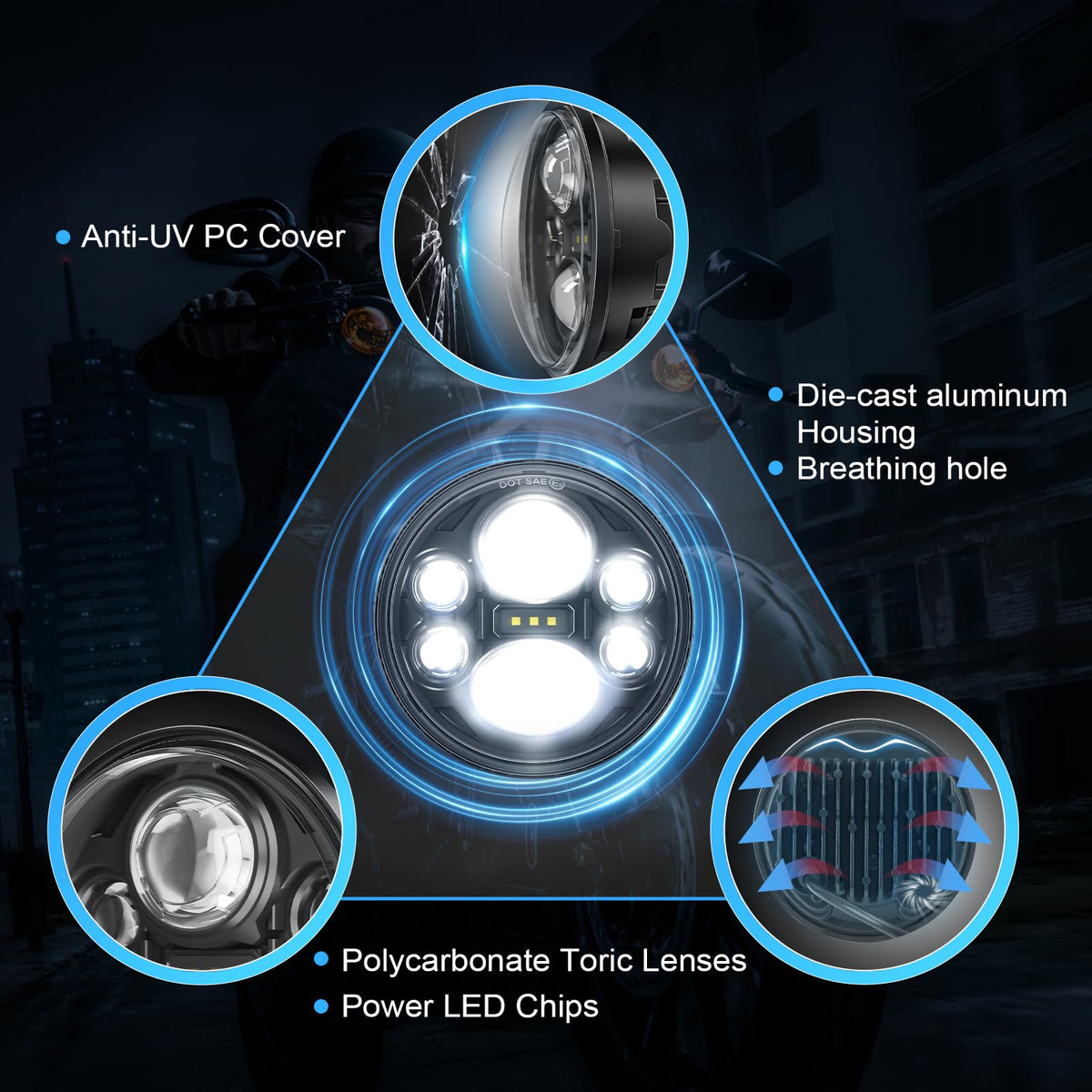 Suparee 5.75 Inch Led Motorcycle Headlight Plug & Play 5-3/4'' Motorcycle Projection Headlight Compatible With Dyna Softail Deuc