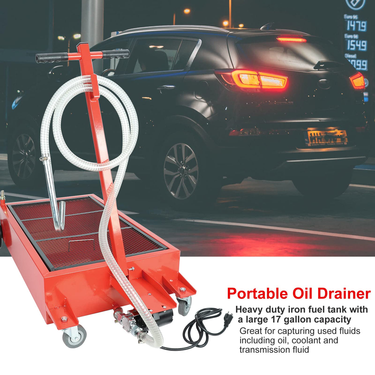 SUPERFASTRACING 17 Gallon Low Profile Roll Around Oil Drain Pan with 110V Electric Pump 8FT Hose for Trucks Cars SUVs