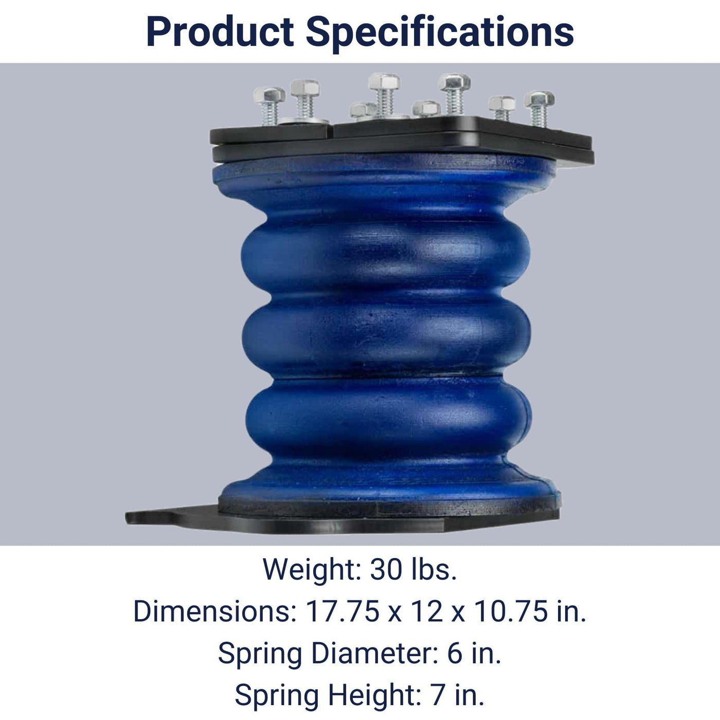SumoSprings are a patented suspension product designed to enhance load carrying ability, stabilize sway, and improve overall driver control and ride comfort. They are maintenance free, do not leak air, and do not require airlines or compressors. SumoSprings are manufactured in a variety of heights, diameters and densities to support multiple front and rear applications. They are manufactured from proprietary closed micro-cellular urethane providing a smooth and progressive spring rate with superior damping properties.