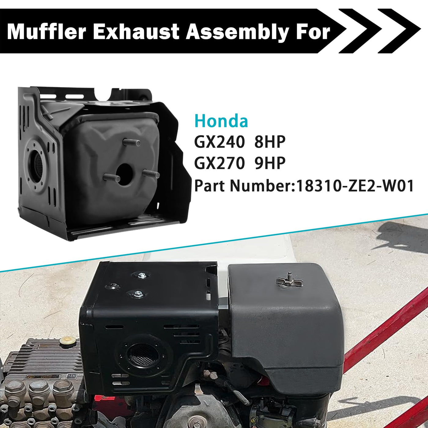 Sutmorly Replacement Honda GX340 GX390 Muffler for 11HP 13HP Engine Motor with Exhaust Pipe About Muffler: Fits Honda GX340 GX390 machine, such as mower, pressure washer and so on. The package include 1 muffler, 1 head shield manifold and 2 Gaskets, no nuts. About Parts Camp: Parts Camps aim is to provide better parts to prolong the use of your machine. We hope to save you more money in another way. If you have any comments or suggestions for us, you are welcome to tell us. We are committed to providing you with better products and services. Please confirm that the product is Parts Camp before purchase. We can't guarantee the quality of products and your rights if you purchasing are not Parts Camp's products.