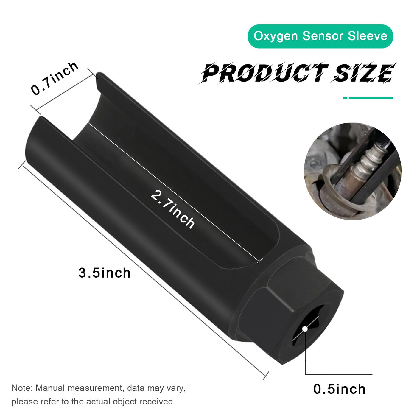 Q: What are the dimensions of the Suvnie Oxygen Sensor Socket?A: The socket measures 3.54 x 0.87 inches and is available in a large size, designed specifically for easy handling and access during oxygen sensor installation and removal.