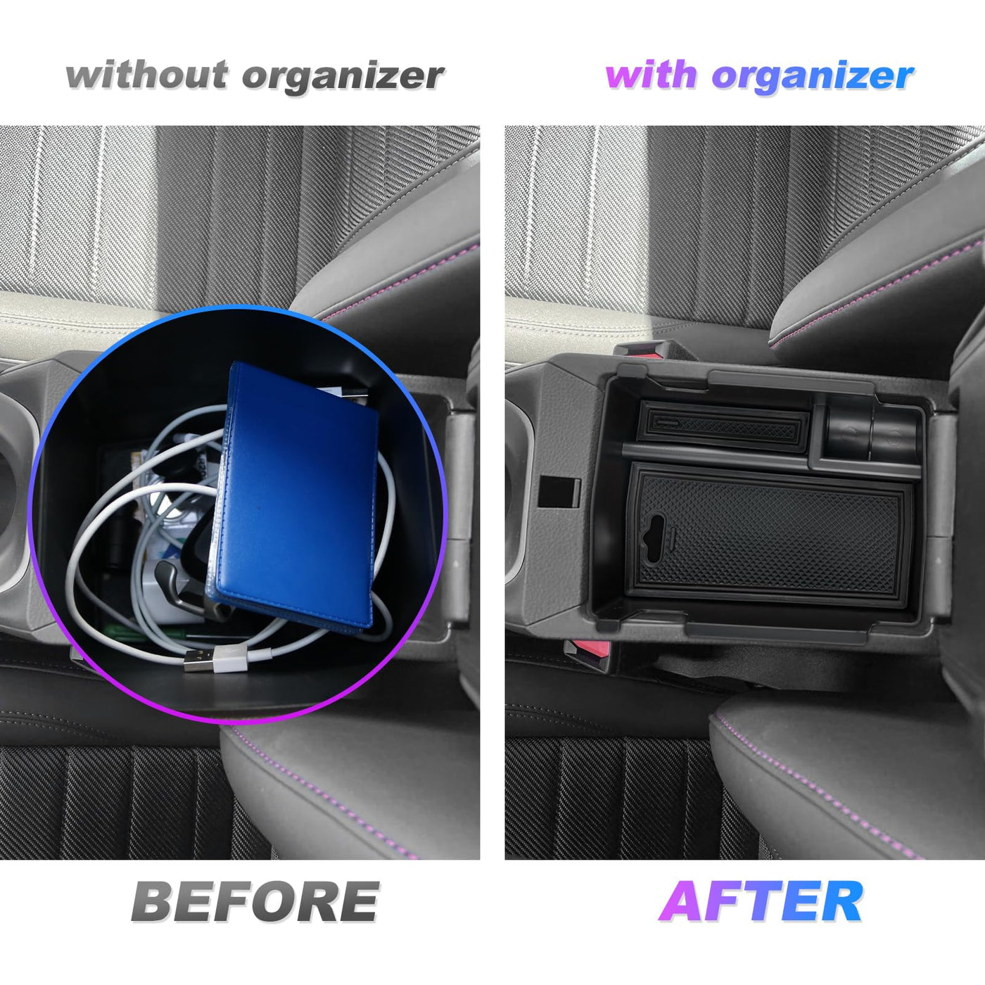 Q: Is it easy to install the SXCY Center Console Organizer?A: Yes, installation is straightforward and requires no modifications. Simply place the organizer into your center console armrest area, and you're ready to go!