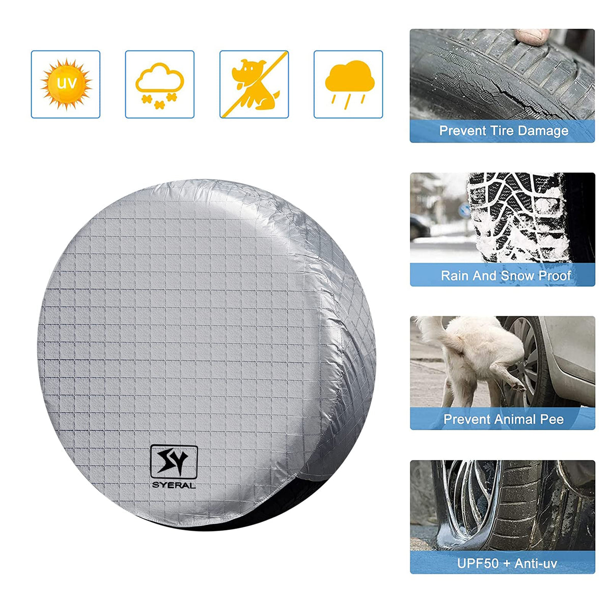 Syeral Rv Tire Covers Set Of 4, Waterproof Anti-Uv Snow Sun Rain Wheel Tire Protectors Covers For Trailer,Camper,Rv,Truck,Suv (S