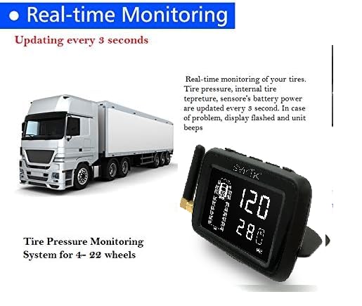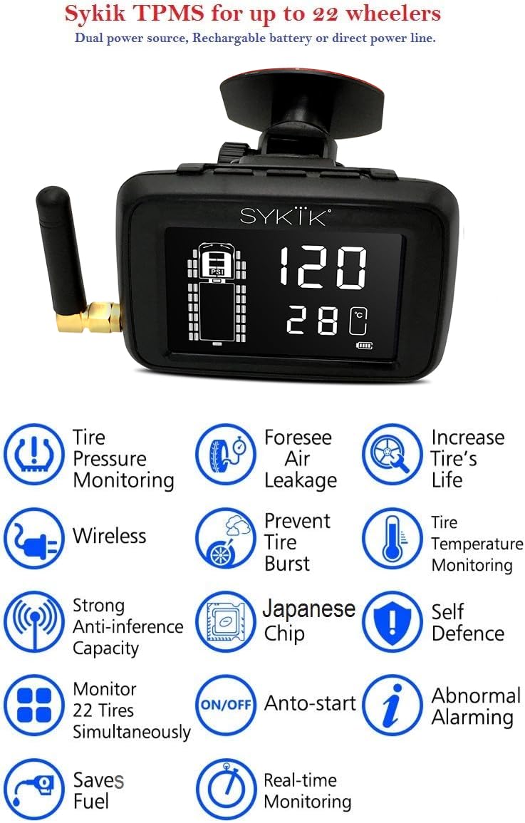 Sykik-TPMS Real Time Tire Pressure Monitoring System for Cars, RVs and Trucks, up to 36 Wheels -Theft Sensors, with 3-Year US Warranty (12) …