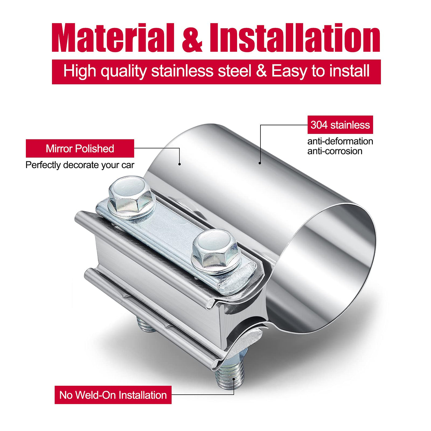 Q: What materials are used in the construction of this exhaust clamp?A: The SYKRSS exhaust clamp is constructed from high-quality stainless steel, which provides excellent corrosion resistance and durability, making it a reliable choice for your exhaust system.