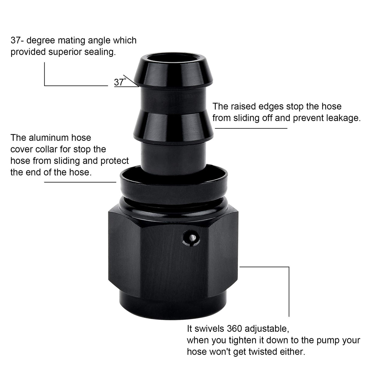 Sykrss 8An Straight Push Lock Swivel Hose End Fitting For Rubber Fuel Line Black