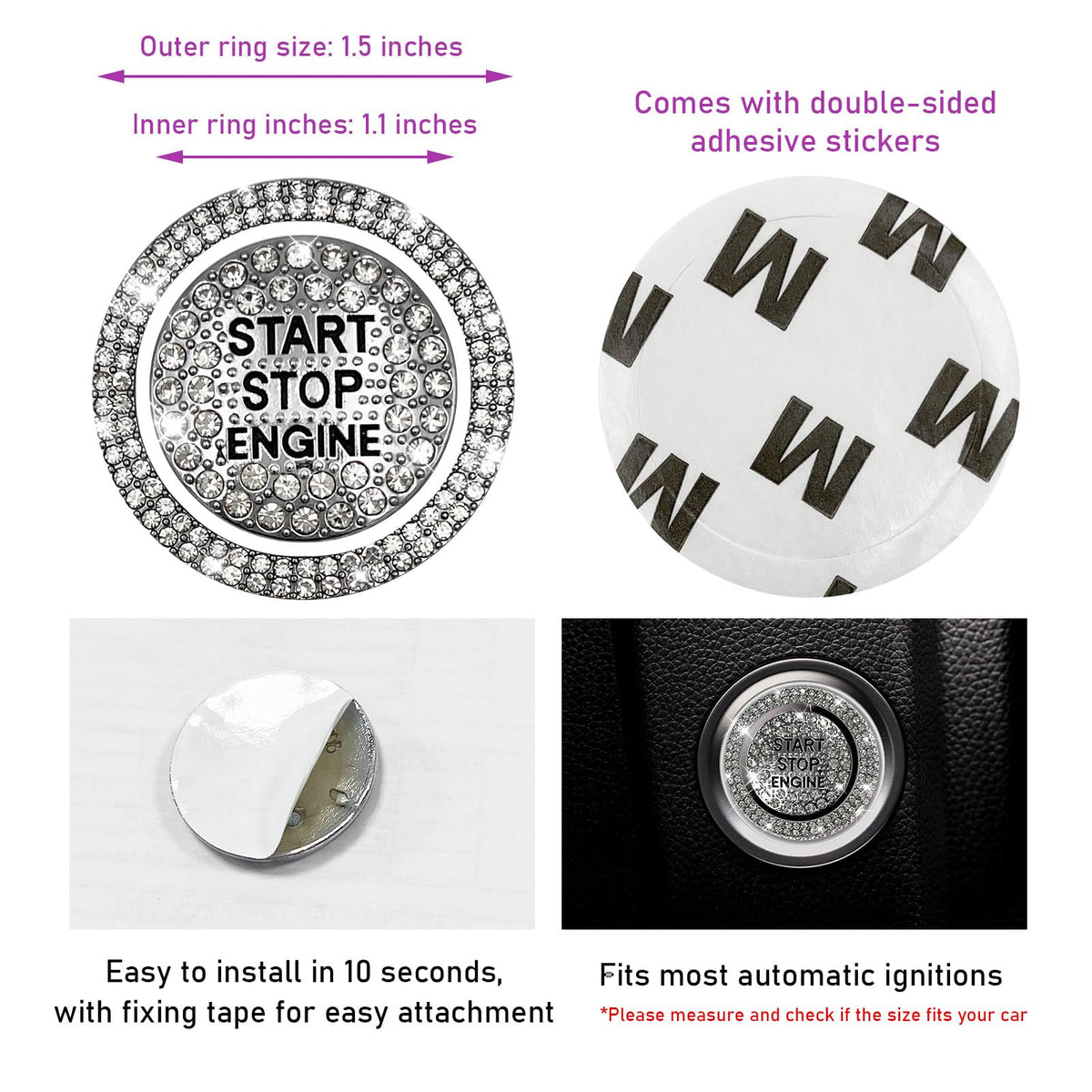 Q: Is the Sylvil Bling Car Push Start Button compatible with all vehicle models?A: Yes, this decorative cover is designed to be universal, making it compatible with most vehicle models for car engine start or stop buttons.