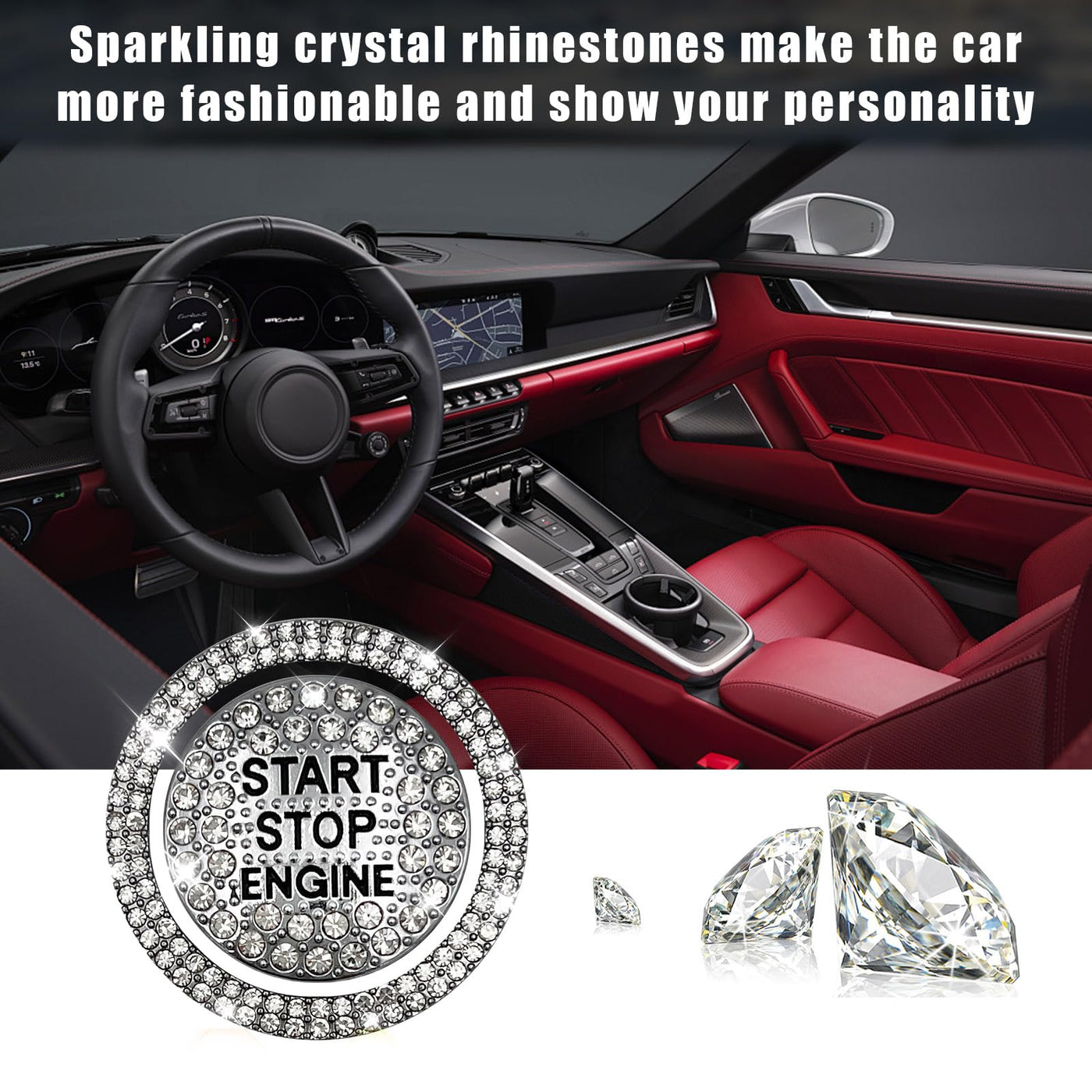 Sylvil Bling Car Push Start Button Sticker, Sparkling Rhinestones Fully Protect Button Decorative Cover, Anti-Scratch Key Ignition & Knob Bling Ring, Car Accessories For Women (White)