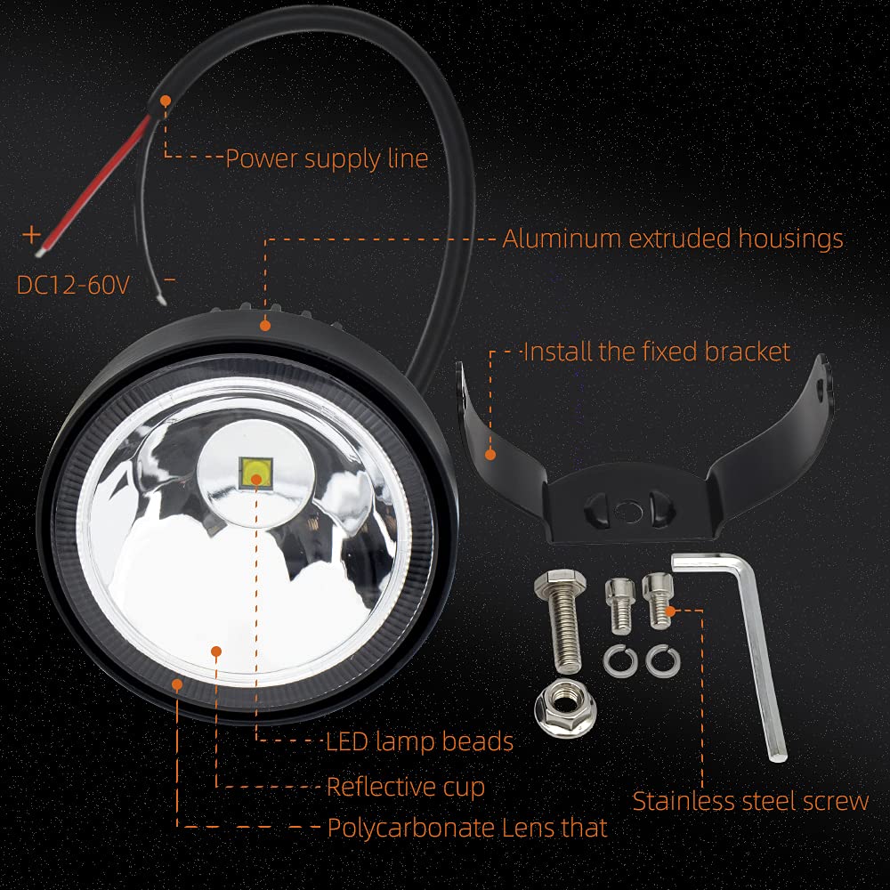 Szdystar Led Round Driving Fog Lights, 2Pcs, 4 Inch Super Bright Led Pods, Work Auxiliary Lights, Ditch Lights, Fit For Atv Utv