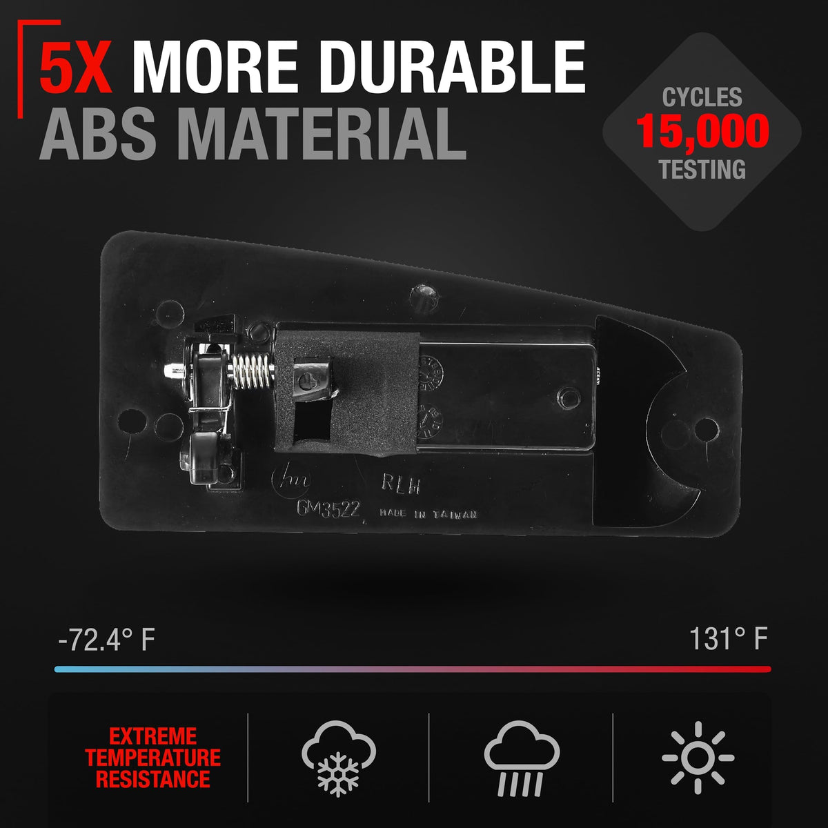 Enhance the interior functionality and style of your vehicle with our high-quality Interior Door Handle. This replacement part directly matches OEM specifications with part numbers 15758172, 79100, GM1520115, ensuring flawless performance and installment. Compatible with: Chevy Silverado 1500 Extended Cab Door Handle 2000-2004 Chevy Silverado 2500 Extended Cab Door Handle 2001-2006 Chevy Silverado 2500 HD Extended Cab Door Handle 2001-2006 Chevy Silverado 3500 Extended Cab Door Handle 2007 Chevy Silverado 1500 Classic Extended Cab Door Handle 2007 Chevy Silverado 2500 HD Classic Extended Cab Door Handle 2007 Chevy Silverado 3500 Classic Extended Cab Door Handle 2007 GMC Sierra 1500 Classic Extended Cab Door Handle 2007 GMC Sierra 2500 HD Classic Extended Cab Door Handle 2007 GMC Sierra 3500 Classic Extended Cab Door Handle 1999-2006 GMC Sierra 1500 Extended Cab Door Handle 2000-2004 GMC Sierra 2500 Extended Cab Door Handle 2002-2005 GMC Sierra 2500 HD Extended Cab Door Handle 2001-2006 GMC Sierra 3500 Extended Cab Door Handle Our door handle is crafted from durable plastic, featuring a robust textured finish that complements your vehicles interior. Designed specifically for the rear left door, it offers comprehensive functionality and improved access. The installation process is simple and can be easily accomplished at home with just a few basic tools. Opt for our Interior Door Handle to maintain the operational efficiency and enhance the comfort and style of your vehicle's interior.