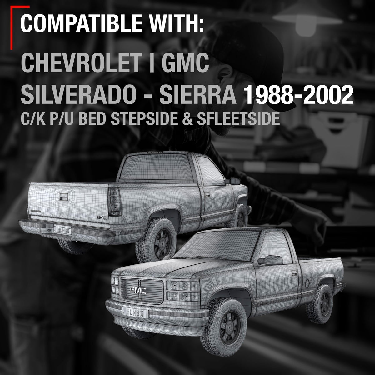 Enhance the functionality and style of your Pickup's tailgate with our robust Tailgate Handle, compatible with 1988-1999 Chevrolet C1500, 1988-1999 Chevy K1500, 1988-2000 Chevy C2500, 1988-2000 Chevy C3500, 1988-2000 Chevy K2500, 1988-2000 Chevy K3500 , 1991-2002, Chevy C3500HD, 1988-1999 GMC C1500, 1988-1999 GMC K1500, 1988-2000 GMC C2500, 1988-2000 GMC C3500, 1988-2000 GMC K2500, 1988-2000 GMC K3500, 1991-2002 GMC C3500HD. This handle fits seamlessly with both Stepside and Fleetside bed types, offering a versatile solution for your pickup truck. It replaces OEM part number 15991785, 15606895, 15991785, 77077, and meets factory standards for fit, form, and function. Constructed from high-quality metal and finished in a textured black zinc, our tailgate handle is built to withstand daily wear and tear, ensuring long-lasting durability and reliability. The sleek black finish not only adds a touch of sophistication but also resists corrosion and fading. Opt for our Tailgate Handle to replace your worn or broken handle and restore the ease of operation to your tailgate. It's an ideal choice for maintaining both the functionality and the aesthetic appeal of your pick up.