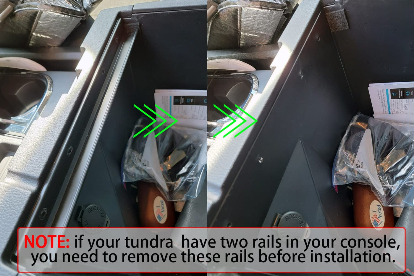Compatibility models: Compatible with Tundra 2014 2015 2016 2017 2018 2019 2020 2021 ,including SR, SR5, LIMITED, Platinum,1794 Edition and TRD Pro. Features: TACOBRO insert tray divides your center console into two layers, which can help you protect the privacy space under the center console. Keeps your center console more organized, so you can and quickly find what you need. Maximize space for more stuff and keep stored items away from rolling. Package comes with removable rubber pads to increase friction and reduce noise from collisions. ABS material, tougher and support longer use time. Easy to install and remove, beautiful and practical. Close fit with the center console, no creaking sound.