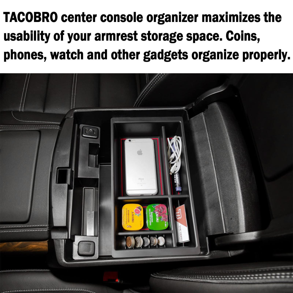 Tacobro Center Console Organizer Compatible With 2014-2018 Gmc Sierra 1500 /Chevy Silverado 1500 Accessories 2015-2020 Yukon Xl/Tahoe Suburban Insert Tray Armrest Storage Abs Plastic, Red