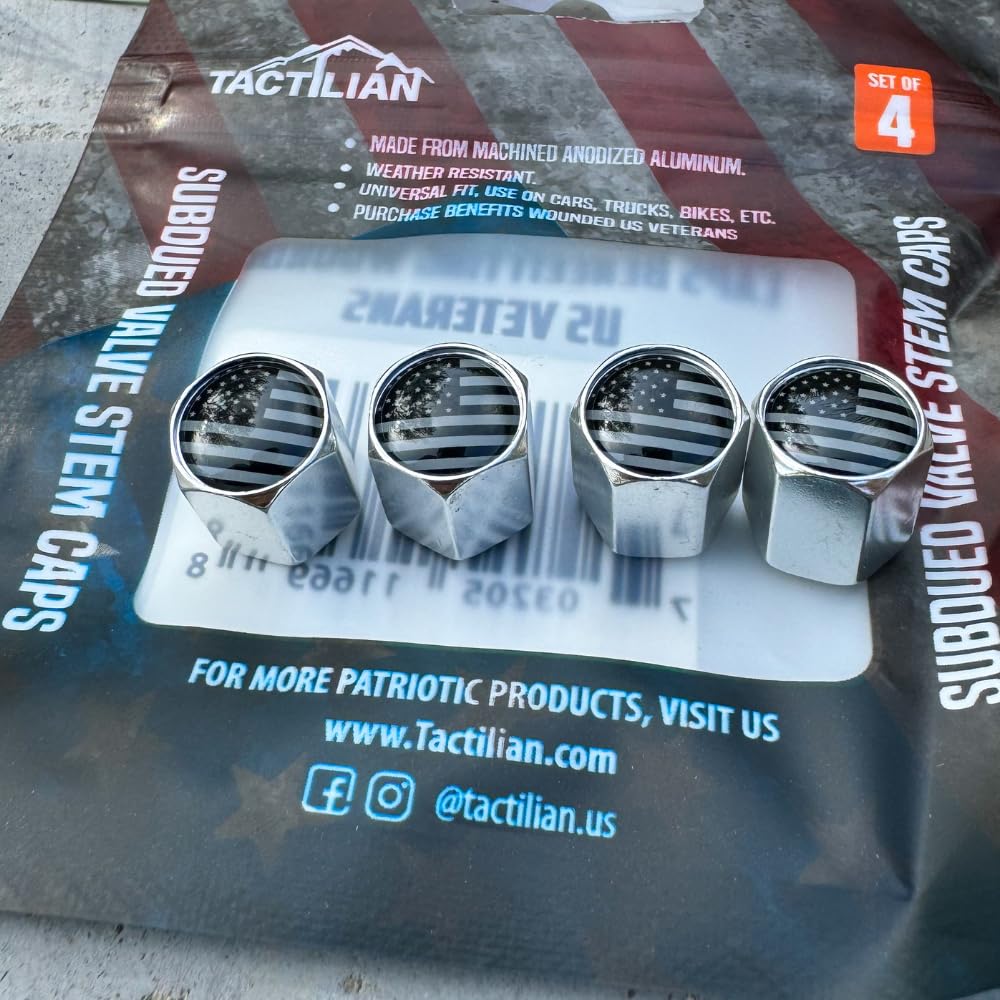 Tactilian Patriotic Car Accessory Show Off Your Love For The Usa With These Chrome Tire Valve Stem Caps Featuring A Sleek Black And Silver American Flag Emblem. A Perfect Addition To Any Car, Truck, Suv, Or Motorcycle. These Usa Flag Tire Valve Caps Are Made From Premium Chrome-Plated Aluminium, Ensuring Durability And Resistance Against Extreme Weather Conditions, Road Debris, And Corrosion. Each Cap Includes A Built-In Rubber O-Ring For A Secure, Tight Seal That Prevents Air Leaks And Protects Your Tire Valves From Moisture, Dirt, And Dust. Universal Fit For All Vehicles - Designed To Fit All Standard Schrader Valve Stems, These Tire Valve Stem Covers Are Perfect For Cars, Trucks, Motorcycles, Suvs, Bicycles, And More. Tactilian Silver Tire Valve Caps Can Be Installed Quickly By Hand. Just Screw Them Onto The Valve Stem, And Youre Ready To Hit The Road In Style. Silver Valve Stem Caps Silver Tire Valve Caps Tire Valve Caps Silver Chrome Valve Stem Caps Chrome Valve Stem Covers Chrome Tire Valve Caps Chrome Valve Stems Valve Stem Caps Chrome Chrome Tire Valve Stem Caps Chrome Tire Valve Covers Chrome Valve Stem Caps 4 Pack Chrome Valve Caps Chrome Tire Stem Caps Tire Valve Caps Chrome Chrome Tire Valve Tire Stem Caps Chrome Chrome Valve Stem Sleeves Chrome Tire Valve Stem Chrome Air Caps Valve Stem Covers Chrome Chrome Valve Stem Chrome Stem Caps