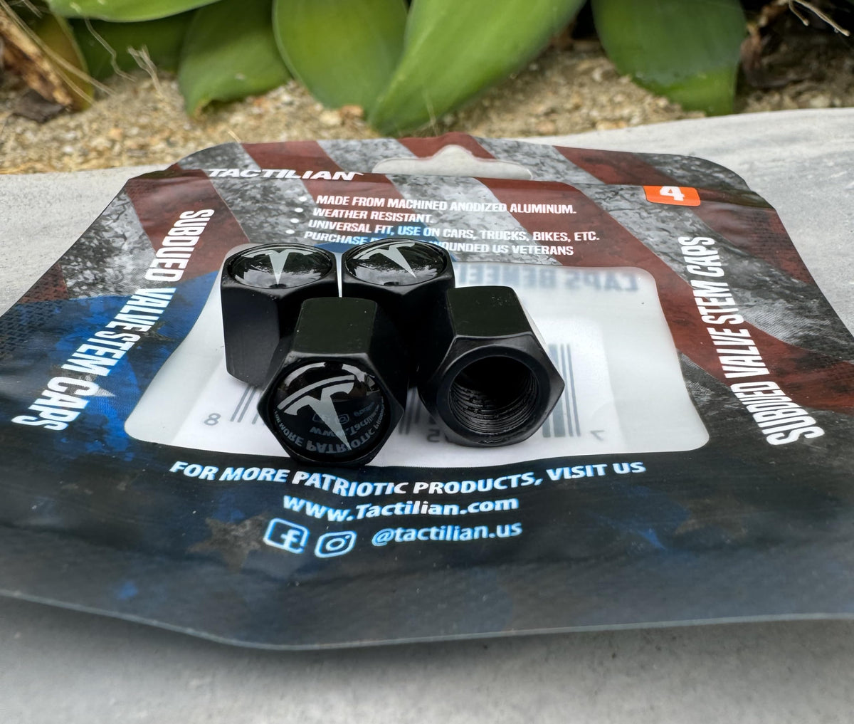 Tactilian Car Tire Valve Stem Caps For Tesla Model 3, S, X, Y Accessories (4 Pack) Leakproof Aluminum Tire Valve Caps With Rubbe