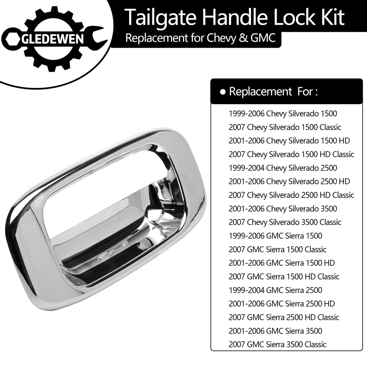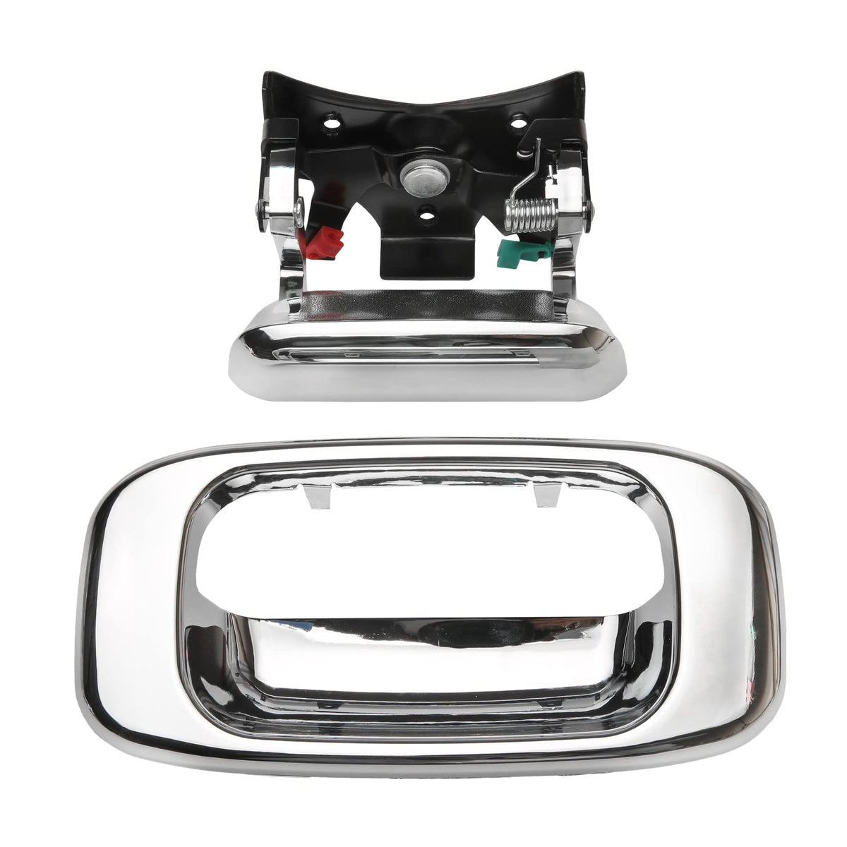Tailgate Door Handle & Bezel Lock Set, Compatible With 1999-2007 Chevy Silverado Gmc Sierra 1500 2500 3500, Chrome Exterior Rear