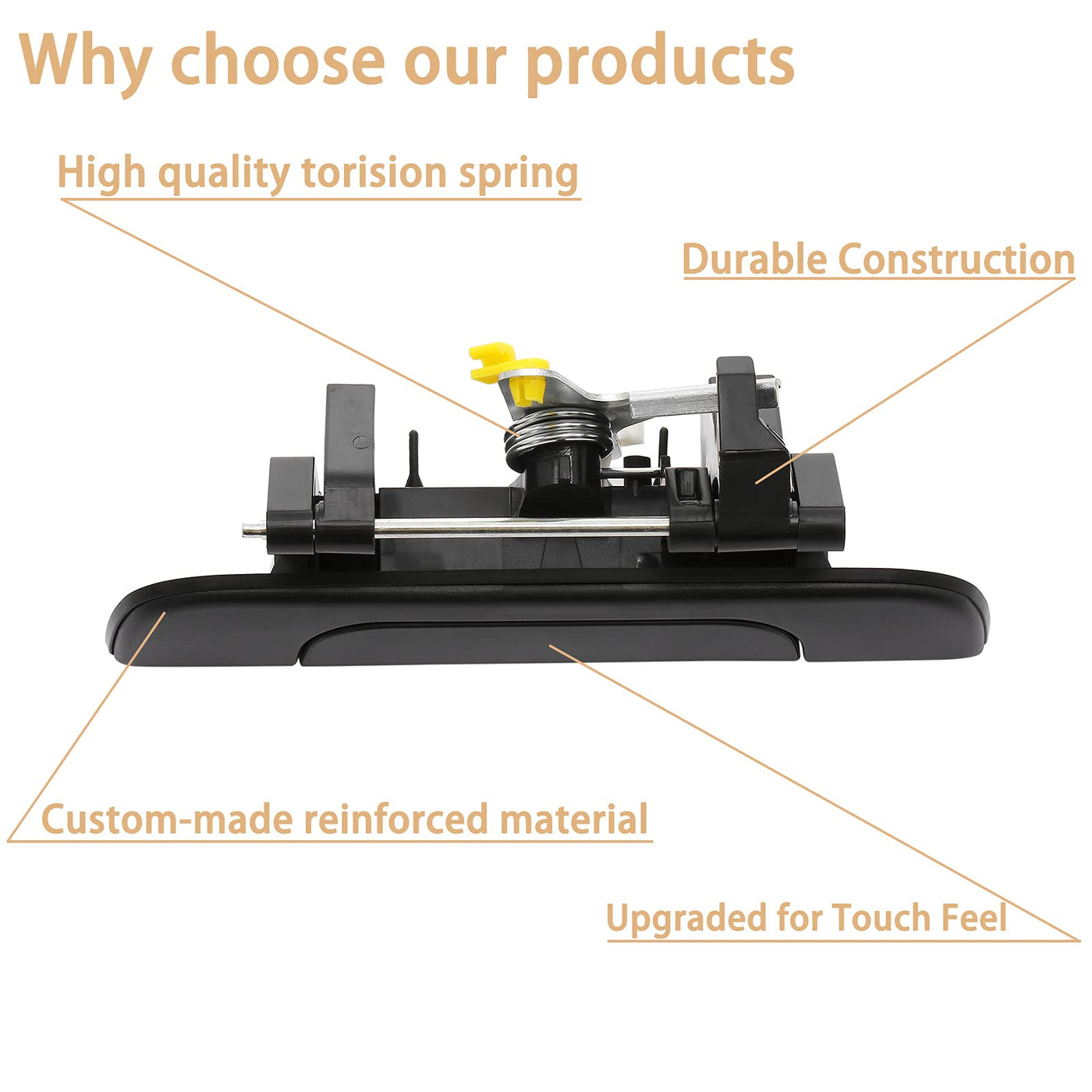 Q: What material is the tailgate handle made of?A: The tailgate handle is made from custom-made reinforced plastic, ensuring durability and reliable performance over time.
