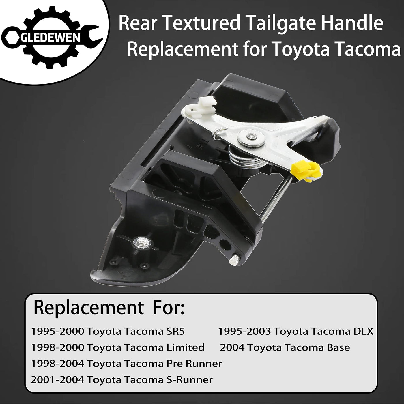 Packing List 1X Exterior Rear Textured Tailgate Handle Condition: New Compatible With: 1995-2000 Toyota Tacoma Sr5 1995-2003 Toyota Tacoma Dlx 1998-2000 Toyota Tacoma Limited 2004 Toyota Tacoma Base 1998-2004 Toyota Tacoma Pre Runner 2001-2004 Toyota Tacoma S-Runner Precise Fit Part Numbers: 6909035010 To1915102 Broken Door Handle? Can'T Get In Your Car? Are You Searching For The Highest Quality, Best Replacement Value Door Handle? We Deserve It. Our Outside Door Handle, To Replace Your Old Or Broken Part, Will Meet Or Exceed Oem Standards.