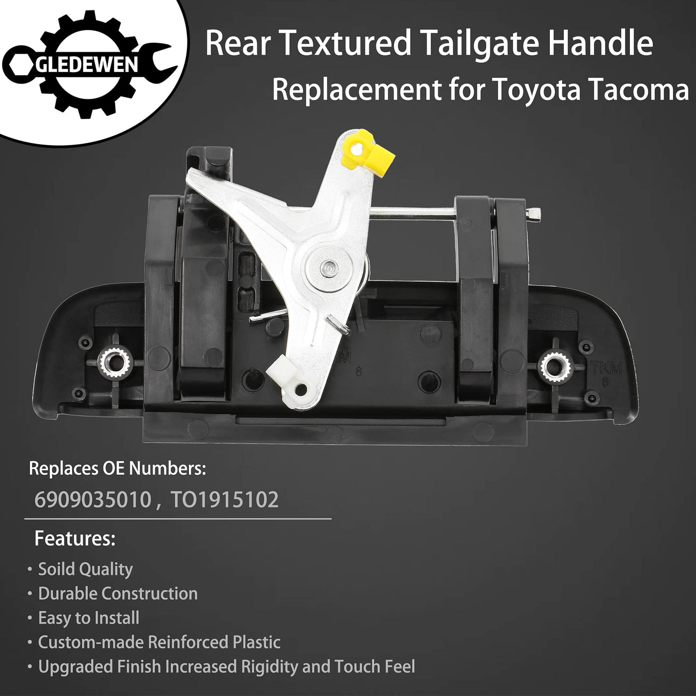 Q: What part numbers does this tailgate handle replace?A: This tailgate handle replaces OEM part numbers 69090-35010 and TO1915102, ensuring it meets or exceeds the original manufacturer's specifications.
