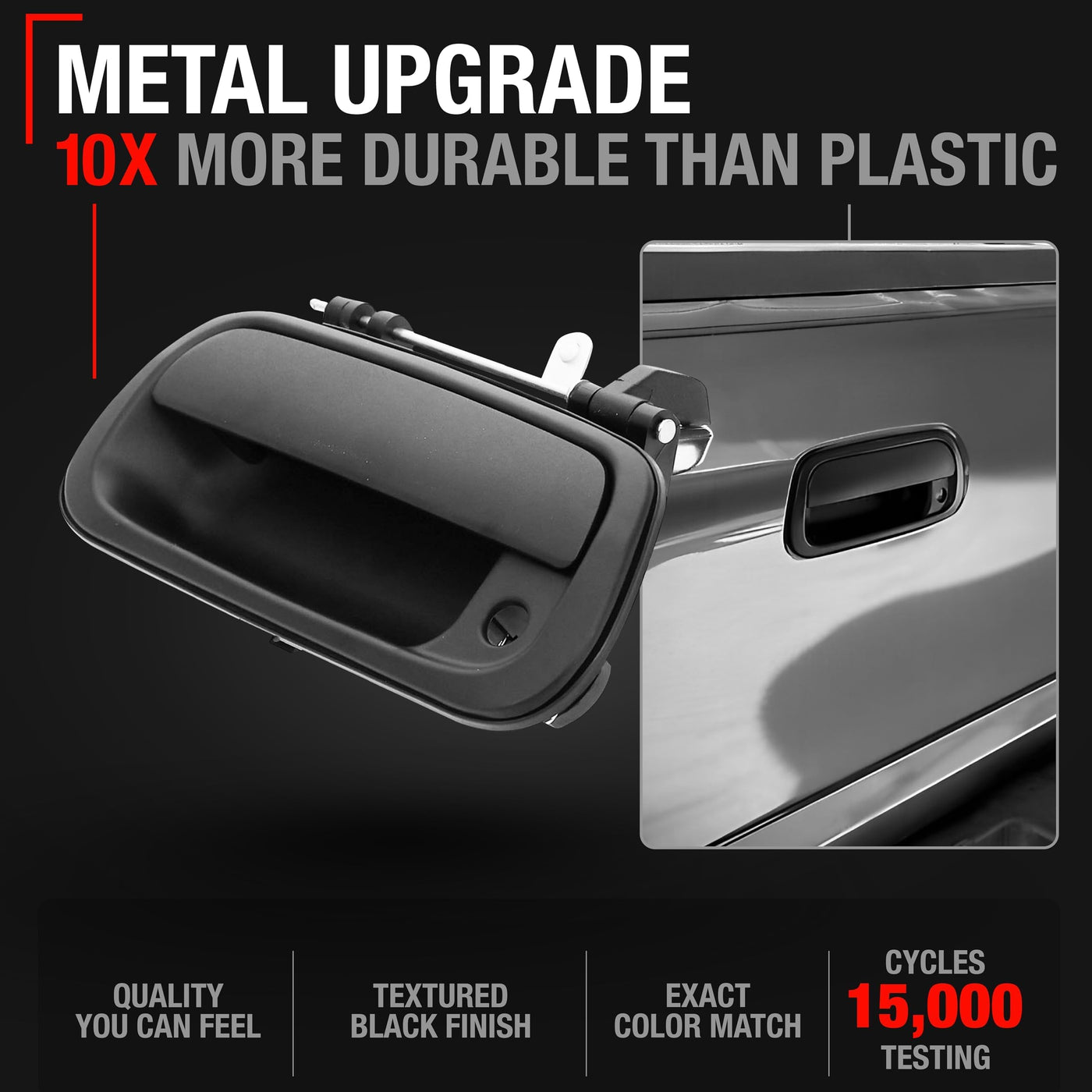 Tailgate Handle Latch Upgraded Metal, Compatible With 2000-2006 Toyota Tundra - Exterior Tailgate Assembly, Textured Black, W/Ke