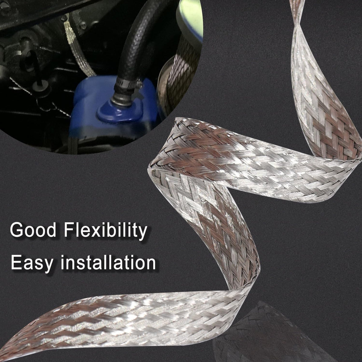 Q: What features make these grounding straps durable and flexible?A: The flat braided structure of the straps provides both flexibility and durability, allowing for excellent current transmission while being able to withstand the rigors of automotive environments.