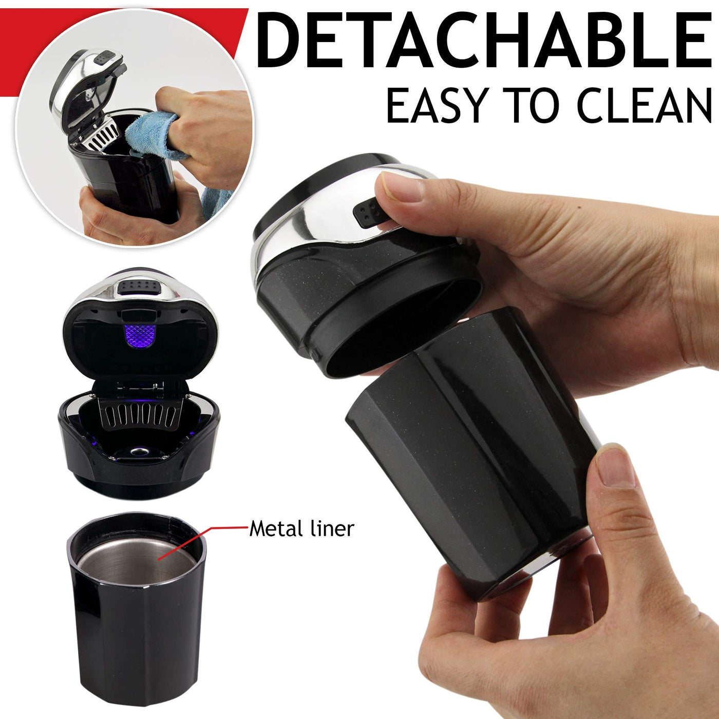 New Design Auto Car Ashtray With Blue Led Light Lid And Lighter For Most Car Cup Holder Many People Like To Roll Down The Windows When They Smoke In Their Cars, But During Rainstorms Or Cold Weather, This Isn'T Always Possible. That Is Why Having A Ashtray In Your Car Is A Must.?Enjoy A Cigarette!?Our Car Ashtrays Allow You To Go Ahead While Still Creating A ''Smoke Free'' Area. You Will Say Goodbye To The Intense Smell Linger, Also Keep The Car Or Your Family Healthy. Its Affordable Price Combined With Its Premium Quality. Simply Click The Add To Cart And Buy Now!?Cover With Removable Lighter!?Gently Turn It Out And Lit Cigarette In Your Car Conveniently (Please Note: Do Not Push More Than 10 Seconds. Do Keep Far Away From The Child When Using). No Worry To Find The Lighter, Use It Easily.?Cool Blue Light With Clamshell Design!?When You Lift The Lid Or The Ashtray Cool Blue Leds Light Up. The Led Illumination Increases Night Vision And Gives You Easy Visual Access To The Tray. Clamshell Design Keeps The Ash From Flying To Make Your Car Clean.?Usb Charge!?Usb Charge Cable Will Be A Good Helper To Your Ashtray!?Detachable Featured!?Consist Of Two Part Of Cigarette Car Ashtray, Press The Back Button, Take Off It And Clean The Liner Easily With Mental Liner Material.?Specular Iron Designed!?The Top Of The Container Gives You Plenty Of Room To Crush The Cigarette Before Dropping It In The Hole And Easily Clean With Specular Iron Designed.?Multiple Uses!?Although Intended For Car Use, The Ashtray Also Can Be Used In Your Home Or Office.Don'T Hesitate! Click Add To Cart And Buy Now And We Ensure You A Relaxing And Exciting Ride!