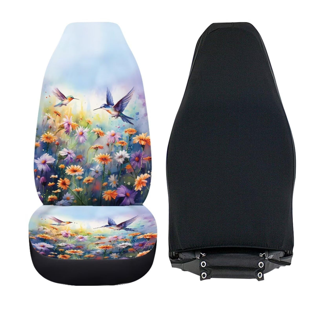 Talayituse Hummingbird Daisy Print Car Seat Covers 2 Pcs, Auto Universal Front Seat Protector, Men Women Automobile Interior Dec