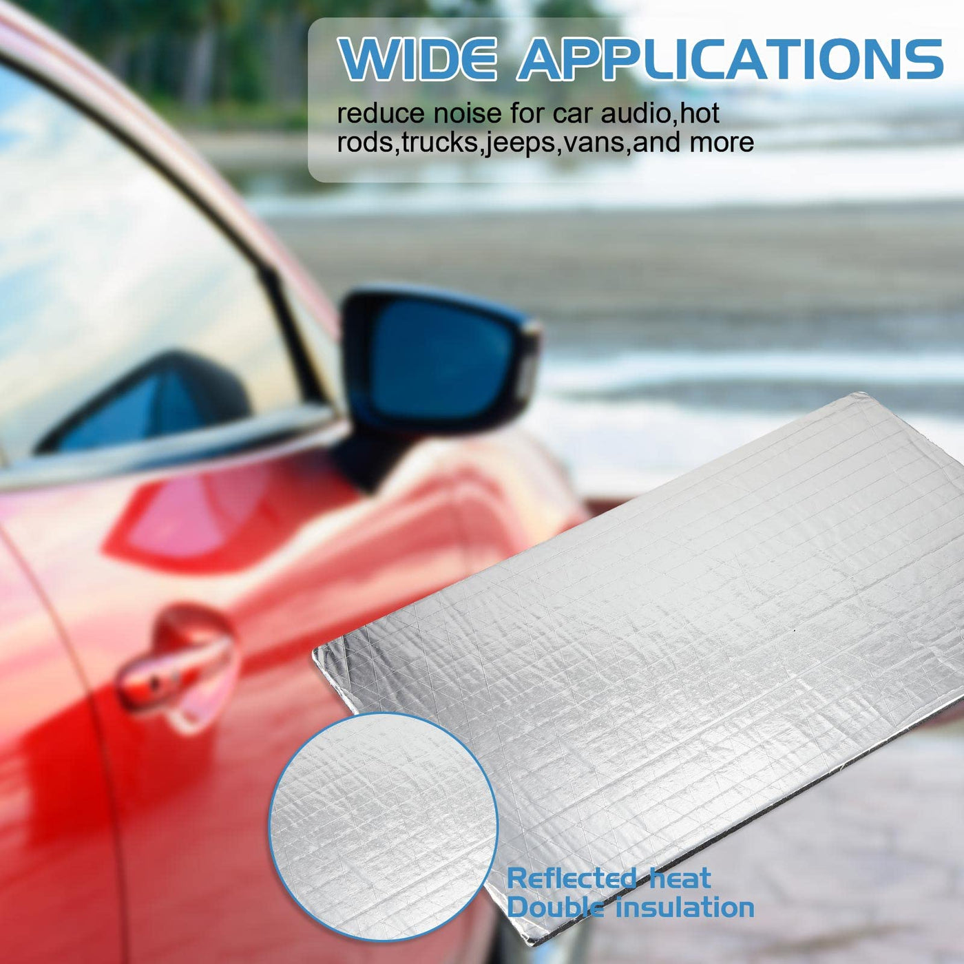 Q: Can these sound deadening mats be used for heat insulation in cars?A: Yes, the high-density closed cell foam material used in these mats is designed to insulate heat effectively, making them suitable for automobile heat insulation as well as sound dampening.