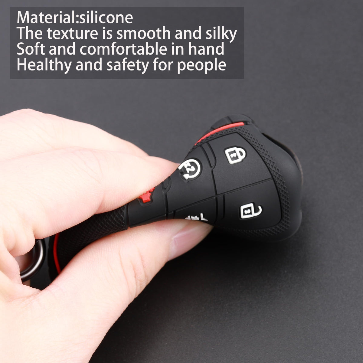 Q: How do I care for and clean the silicone key fob cover?A: To clean the silicone key fob cover, simply wipe it with a damp cloth or wash it with mild soap and water. Avoid harsh chemicals that could damage the silicone material.