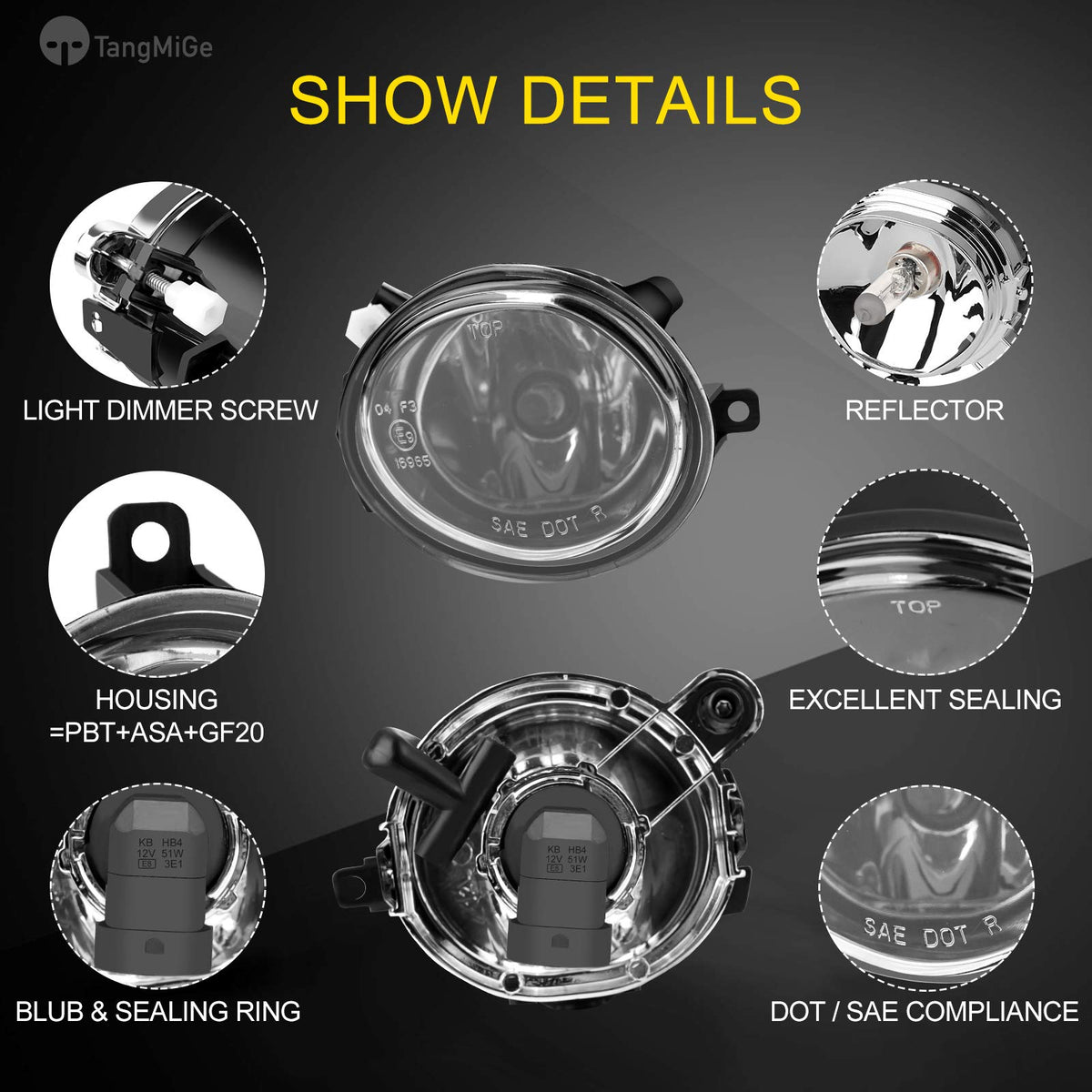Tangmige Fog Lights Lamps For 2000-2006 Bmw (E46 M3 E39 M5) / 3 Series (320I 323I 325I 325Xi 330I 330Xi Sedan W/Sport Package, 325I 325Xi Wagon W/Sport Package) Premium Assembly, 1 Pair, Clear Lens