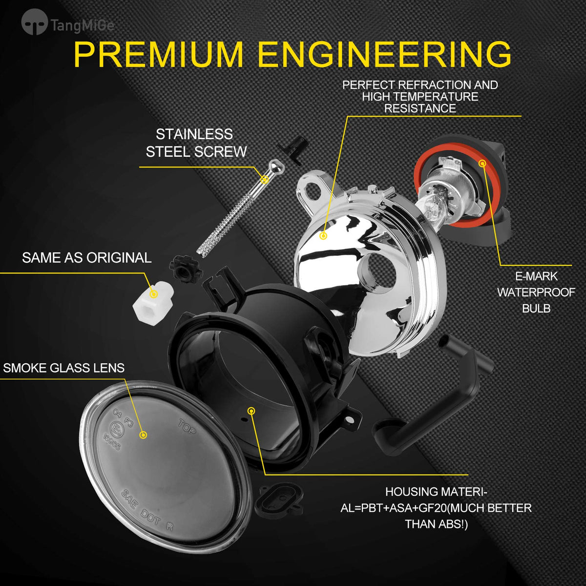 Tangmige Fog Lights Lamps For 2000-2006 Bmw (E46 M3 E39 M5) / 3 Series (320I 323I 325I 325Xi 330I 330Xi Sedan W/Sport Package, 325I 325Xi Wagon W/Sport Package) Premium Assembly, 1 Pair, Smoke Lens