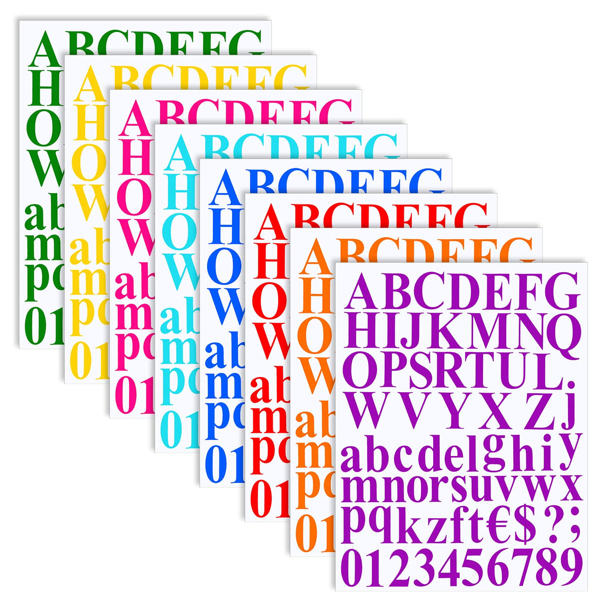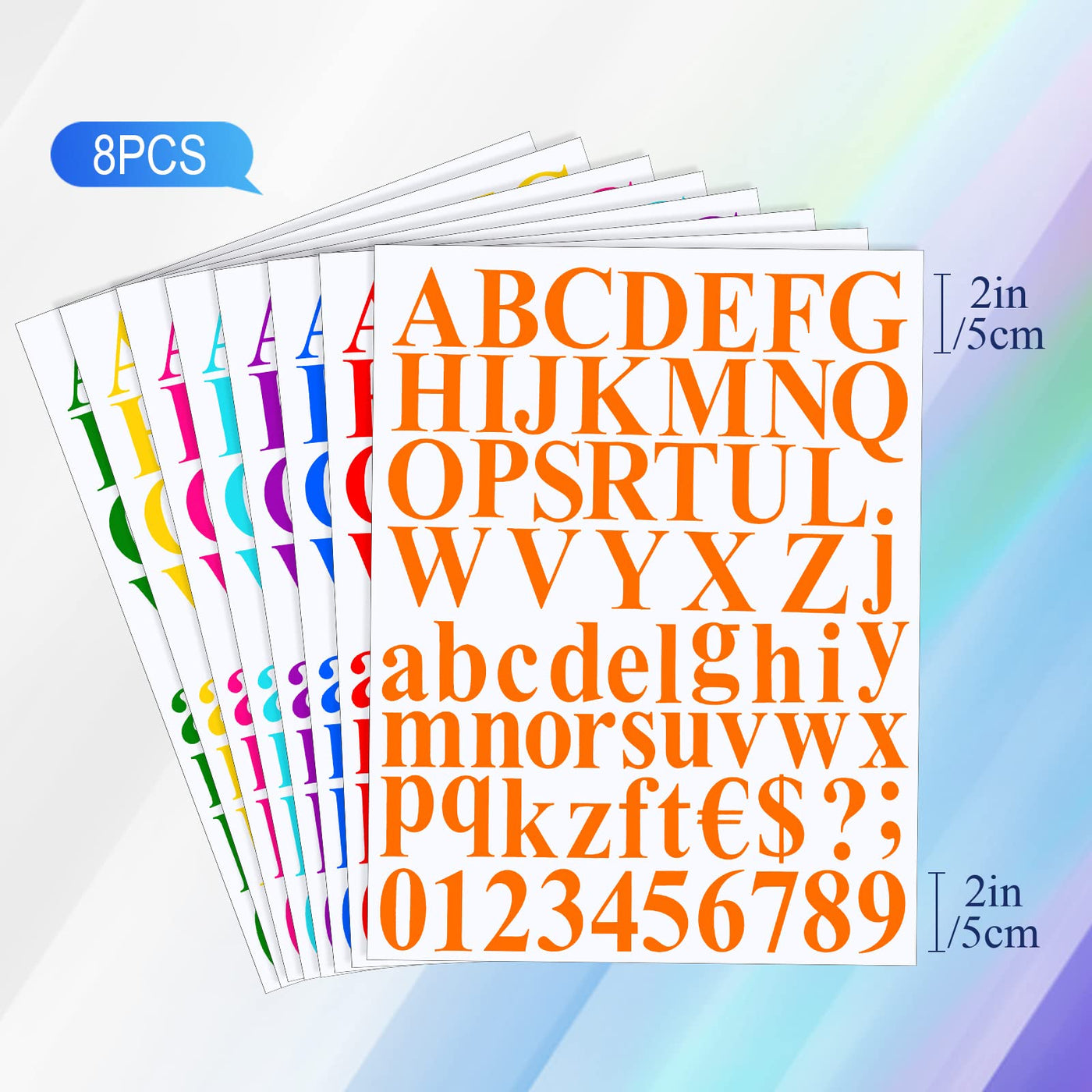 Taobary 8 Sets 536 Pcs Vinyl Letter Number Stickers Alphabet Large Self Adhesive Mailbox Number Waterproof Stickers For Sign Door Business Address Decor(2 Inch,Rainbow)