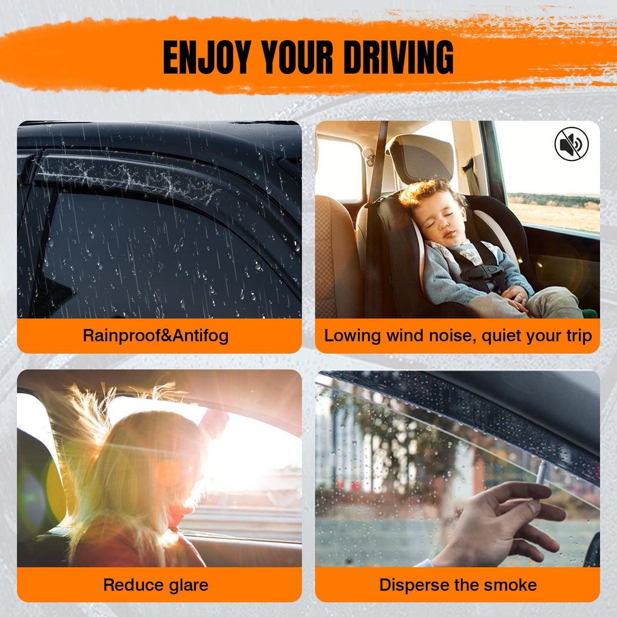 Q: Do the visors help reduce wind noise and improve ventilation?A: Yes, the Tape On Window Visor Deflectors are designed to improve ventilation inside your vehicle while minimizing wind noise. Their innovative design allows fresh air to circulate even in rainy conditions, enhancing your overall driving experience.