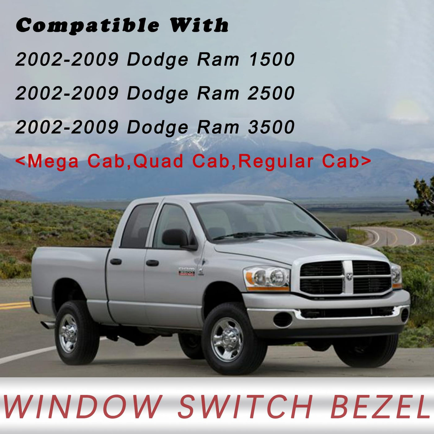 Specification: Condition: 100% Brand New Item Type: Interior Front Door Window Lift Switch Trim Material:Plastic Color: Taupe / Tan Replaces: 5HZ72ZJ8AC,5HZ72ZJ8AB Warranty: 1-year Package Includes: 1 Pcs * Passenger Side Power Window Switch Panel Bezel Fitment: 2002-2009 Dodge Ram 1500 Mega Cab,Quad Cab,Regular Cab 2002-2009 Dodge Ram 2500 Mega Cab,Quad Cab,Regular Cab 2002-2009 Dodge Ram 3500 Mega Cab,Quad Cab,Regular Cab ? Please double check the fitment before placing an order Make sure your vehicle matches the fitment description!