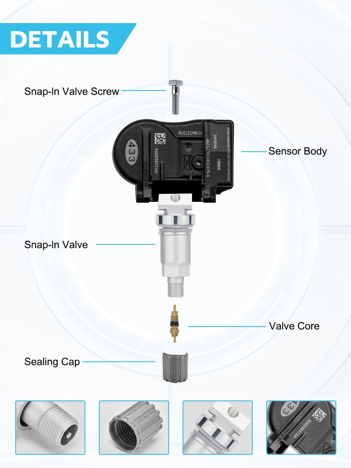 TAUTOY 56053031AD TPMS Tire Pressure Monitoring Sensor 433MHz 2008-2022 for Chrysler Caravan Pacifica Town Country Voyager,for D