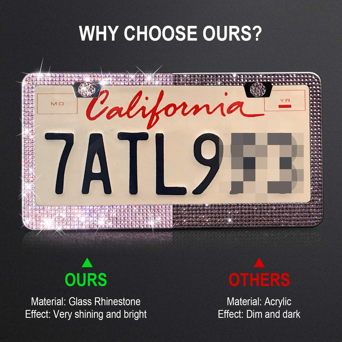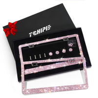 Tchipie 2 Pack Bling Rhinestone License Plate Frames For Women Girl, Bedazzled Sparkly Cute Diamond Car License Plate Frame, Gli