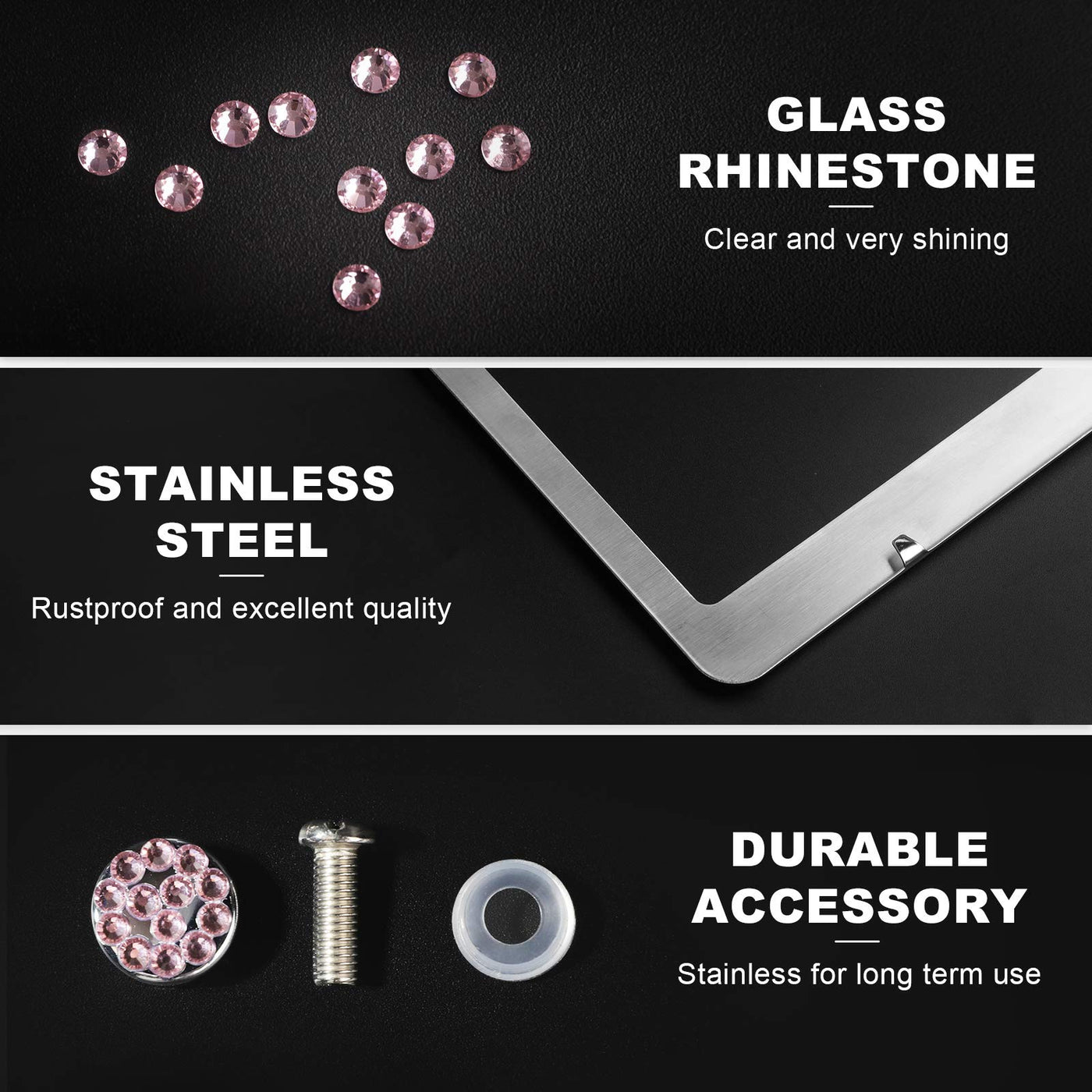 The Package Includes 2 Pack Frames For The Front And Back, Installation Accessories And Two Bags Of Rhinestones. No Worry About The Stones Popping Off. In Addition To Excellent Quality, Our License Plate Frames Are Packaged Nicely In A Wonderful Box. A Perfect Choice For Your Friends Or Family And They Will Be Surely Amazed By Such An Impressive License Plate Frames.