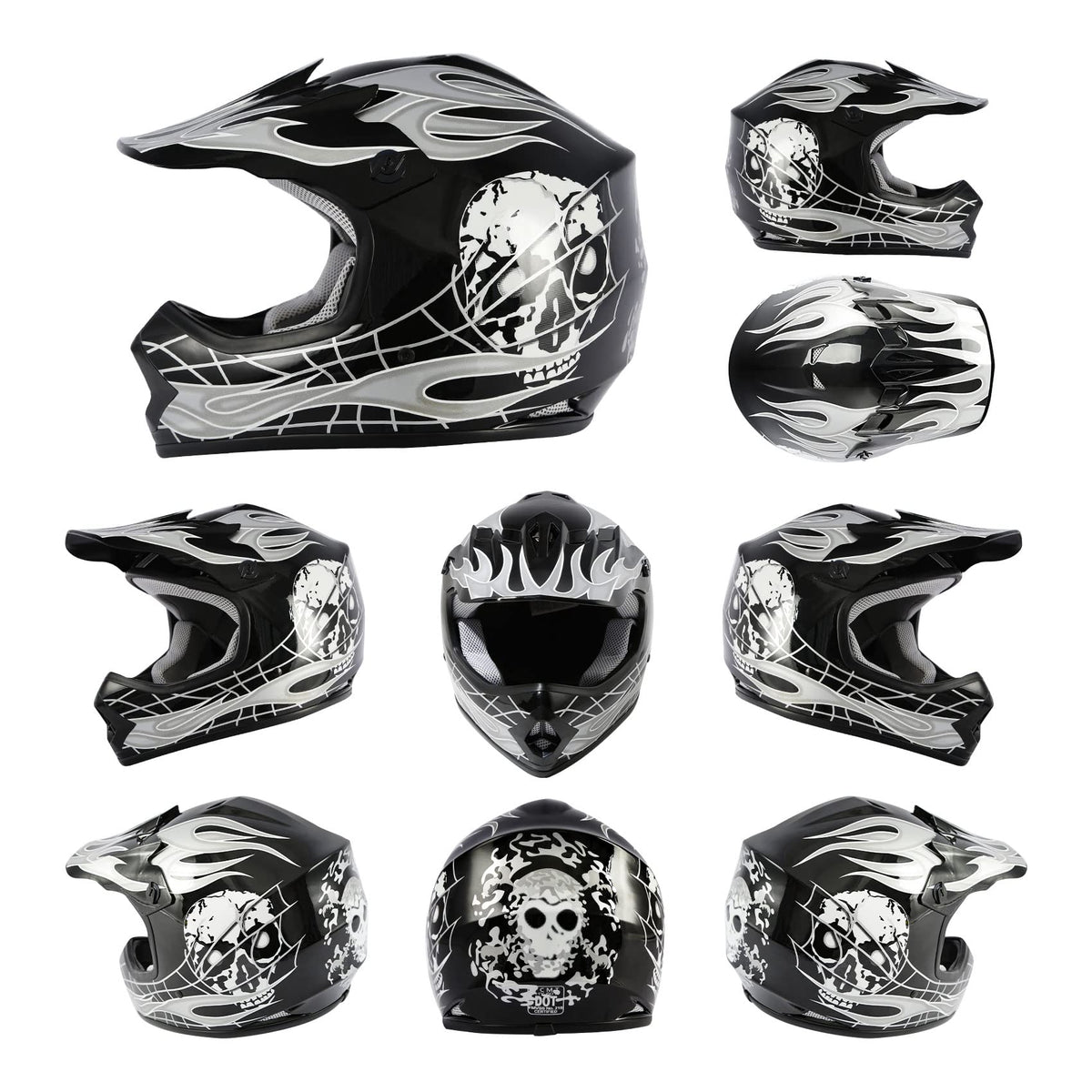 Q: What sizes are available for the TCMT Dot Youth & Kids Motocross Helmet?A: The TCMT Dot Youth & Kids Motocross Helmet is available in Youth X-Large size, with specific head circumference measurements that ensure a proper fit: S: 19.2 / 19.7 Inch, M: 20.1 / 20.5 Inch, L: 20.9 / 21.2 Inch.