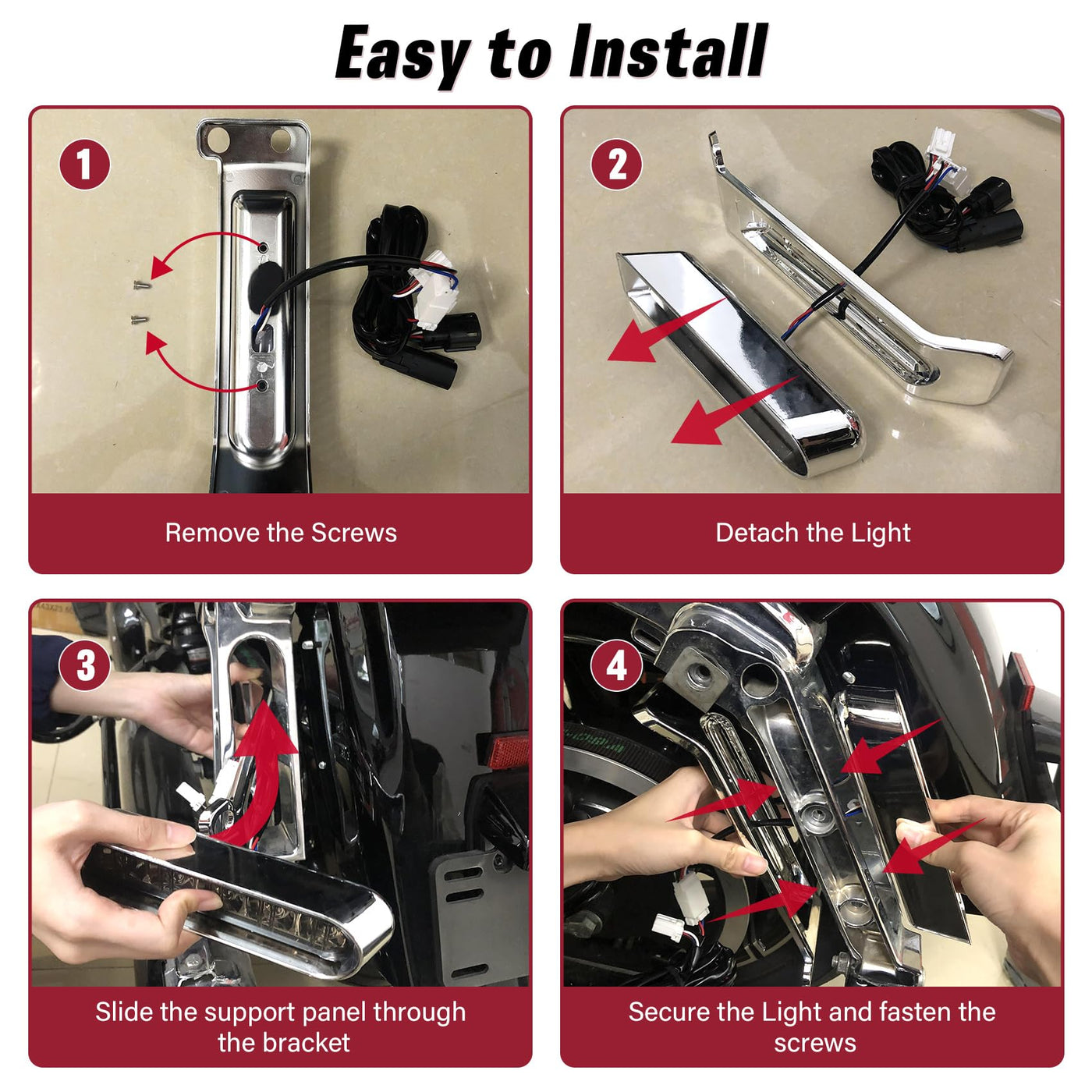 Features Aftermarket 100% brand new Lightning Type: LED Material: Zinc Alloy+ PC Housing Color: Chrome Lens Color: Smoke Function: Running/Brake/Turn Light Integrated LED light, used as running light, brake stop light, rear tail light. Dress up the rear of your touring bike and add some additional lighting in the process. The dark lamps fill the gap between the fender and saddlebags for a clean, uncluttered look. Lamps are mounted in a sealed housing that slips into the opening, and are held in place with the saddlebag support hardware and an adhesive pad Installation instructions not included. Fitment Fits '14-later FLHTCU, FLHTCUL, FLHTK, FLHTKL, and FLTRU models(Does not fit '23-later FLHXSE and FLTRXSE and '24-later FLHX, FLTRX and FLTRXSTSE models)Fit For Harley CVO Road Glide Limited FLTRKSEanv 2023 Fit For Harley CVO Road Glide Limited FLTRKSE 2022 Fit For Harley Road Glide Limited FLTRK 2020-2023 Fit For Harley Road Glide Ultra FLTRU 2016-2019 Fit For Harley Electra Glide Ultra Classic Low FLHTCUL 2015-2016 Fit For Harley Electra Glide Ultra Classic FLHTCU 2014-2019 Fit For Harley Ultra Limited Low FLHTKL 2015-2019 Fit For Harley Ultra Limited FLHTK 2014-2024 Package Included:1x Set Lights (Left and right lamp and quick-disconnect wiring harness)