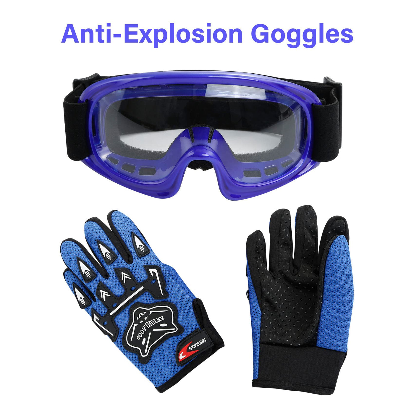TCT-MOTORPARTS DOT Blue Skull Helmet w/ Goggles Gloves Youth Kids Dirt Bike Motocross ATV Helmet Gloves Goggles S~XL (Large)