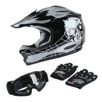 Tct-Motorparts Dot Youth Kids Motocross Atv Helmets Offroad Street Dirt Bike Go-Kart Bmx Mx Full Face Helmet Black Skull Large S