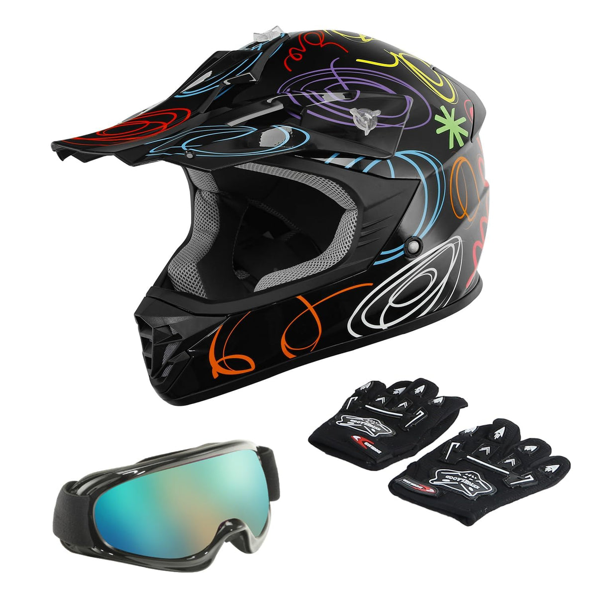 Tct-Motorparts Dot Youth Kids Motocross Atv Helmets Offroad Street Dirt Bike Go-Kart Bmx Mx Full Face Helmet Black W/Graffiti Sa