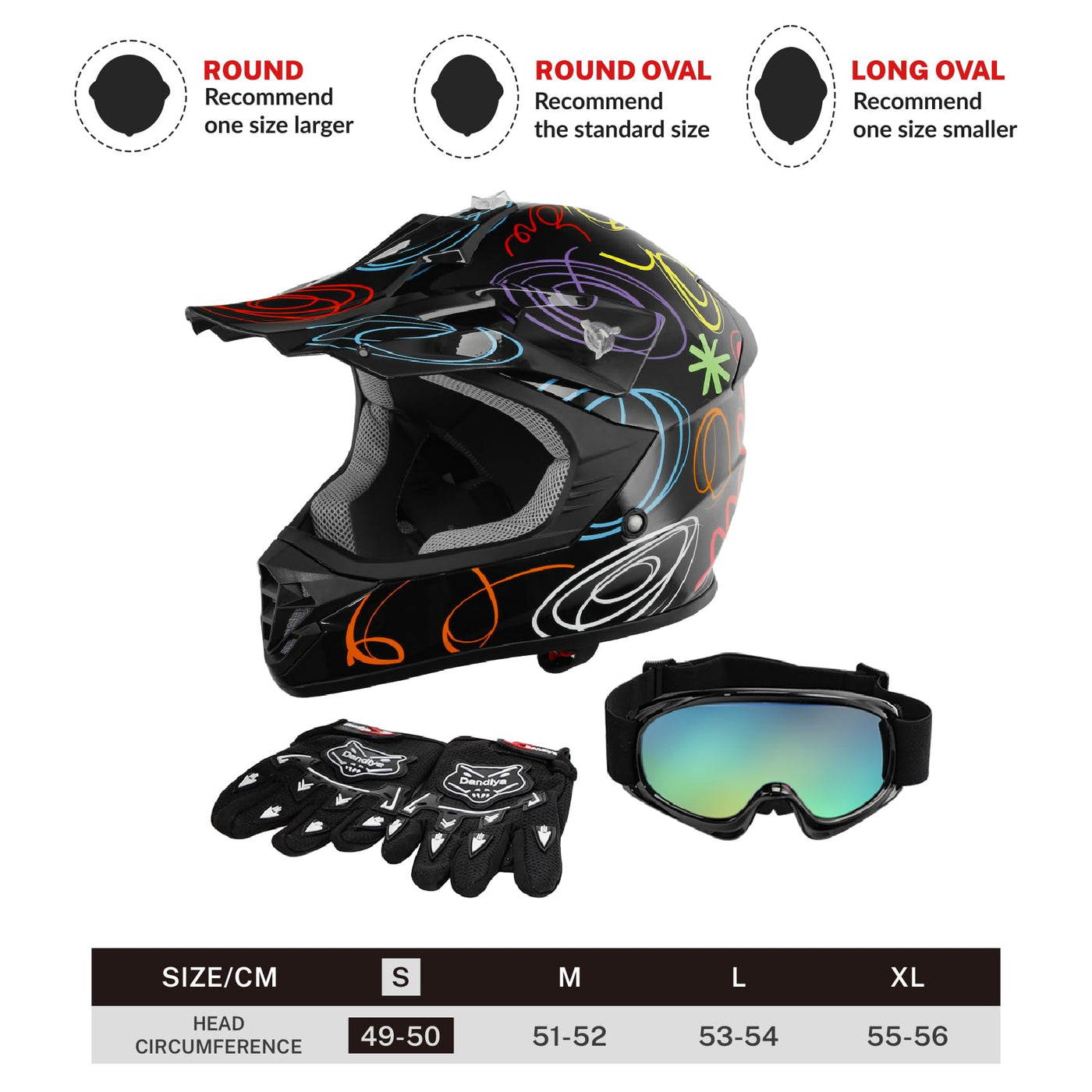 Q: What sizes are available for the TCT-MOTORPARTS Youth ATV Helmets?A: The TCT-MOTORPARTS Youth ATV Helmets are available in various sizes for youth, including Small, Medium, Large, and Extra Large. It's essential to measure your child's head circumference to ensure a proper fit, following the provided size chart.