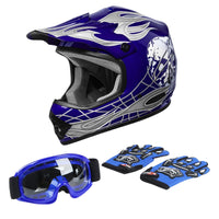 Tct-Motorparts Dot Youth Kids Motocross Atv Helmets Offroad Street Dirt Bike Go-Kart Bmx Mx Full Face Helmet Blue Skull Large Si