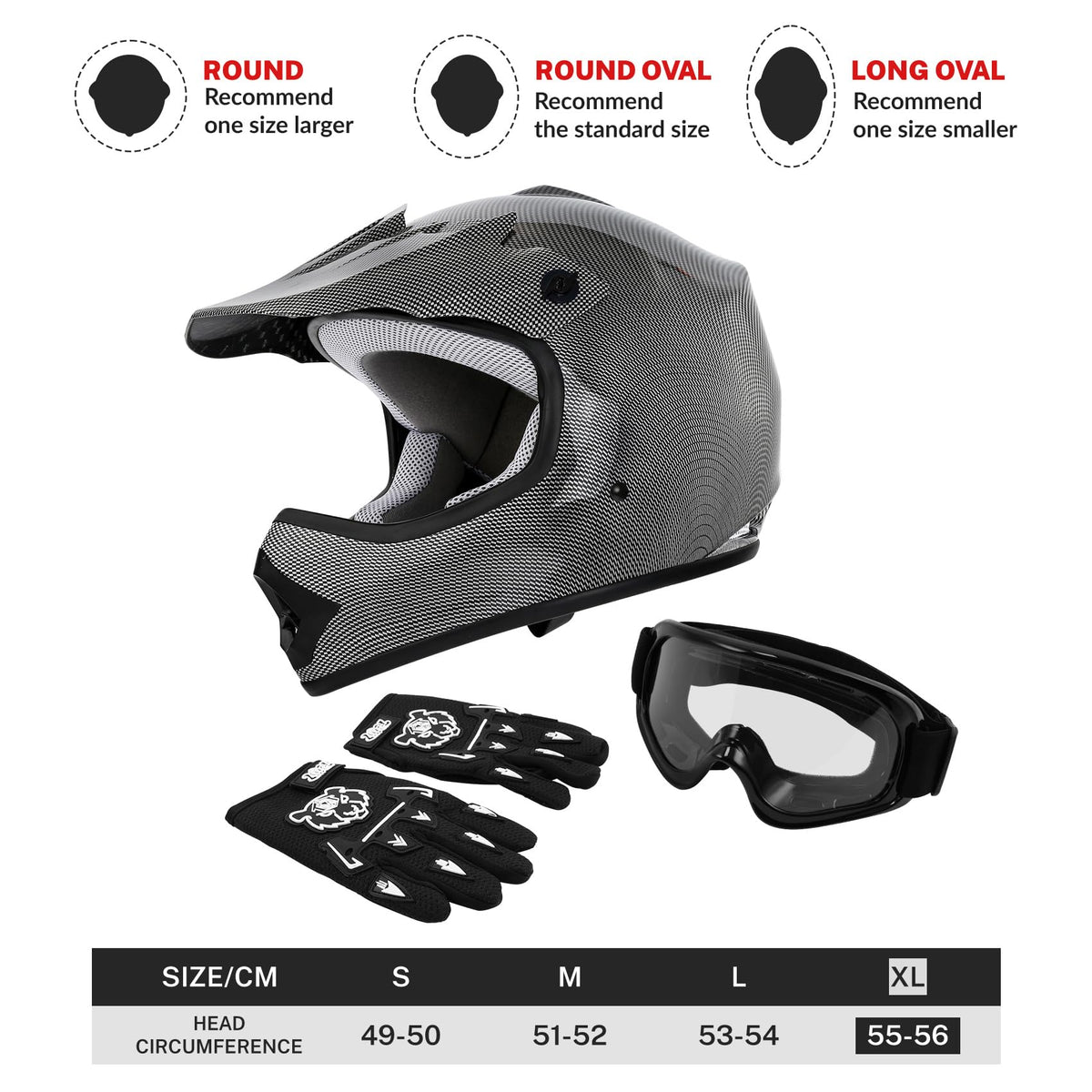 Tct-Motorparts Dot Youth Kids Motocross Atv Helmets Offroad Street Dirt Bike Go-Kart Bmx Mx Full Face Helmet Carbon Fiber X-Larg