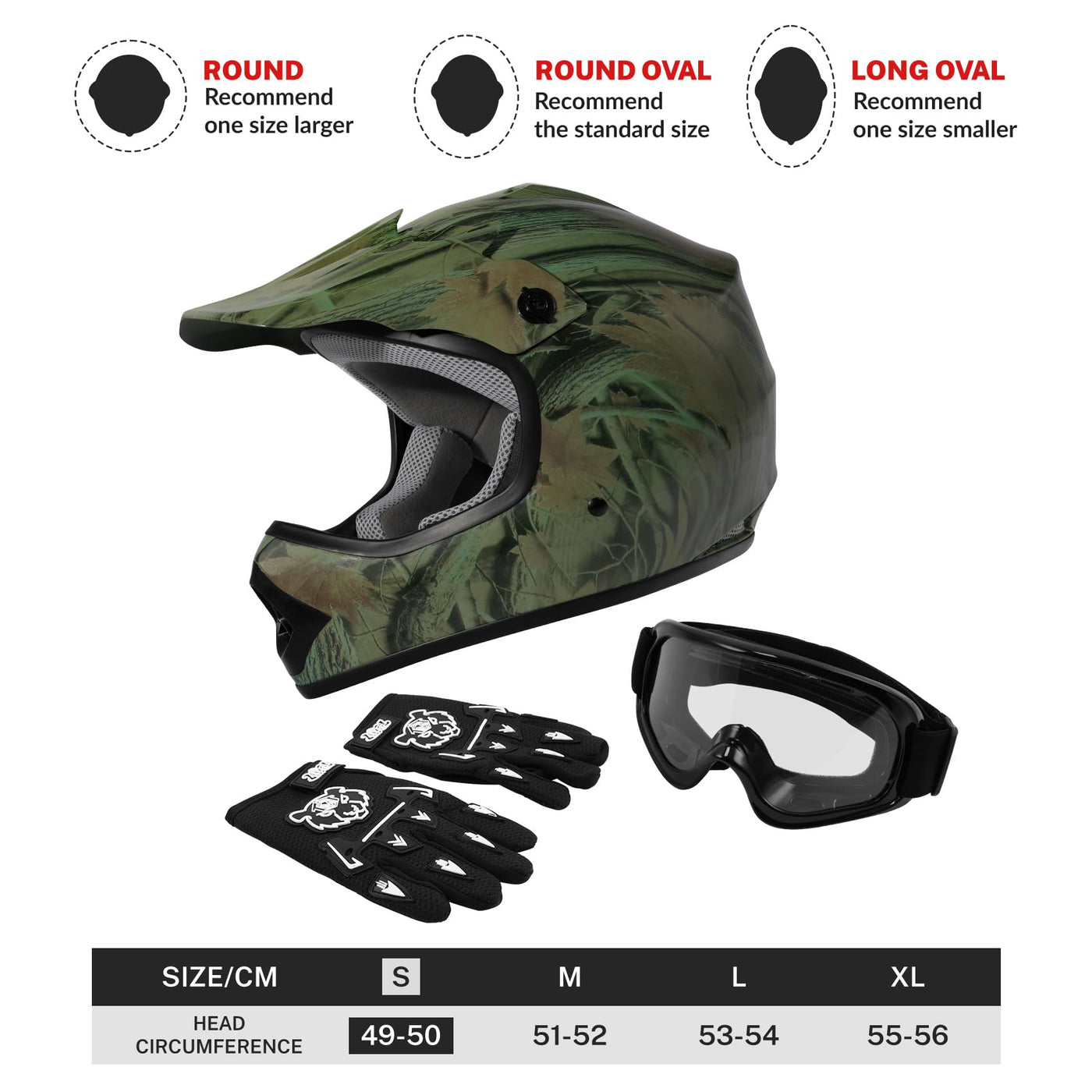 Tct-Motorparts Dot Youth Kids Motocross Atv Helmets Offroad Street Dirt Bike Go-Kart Bmx Mx Full Face Helmet Forest Medium Size