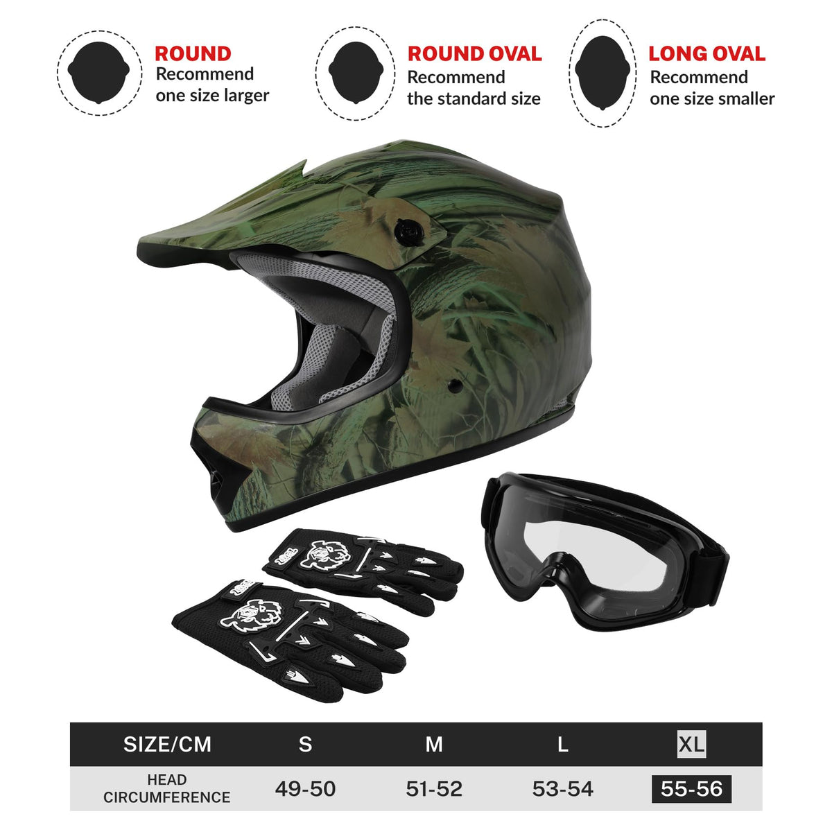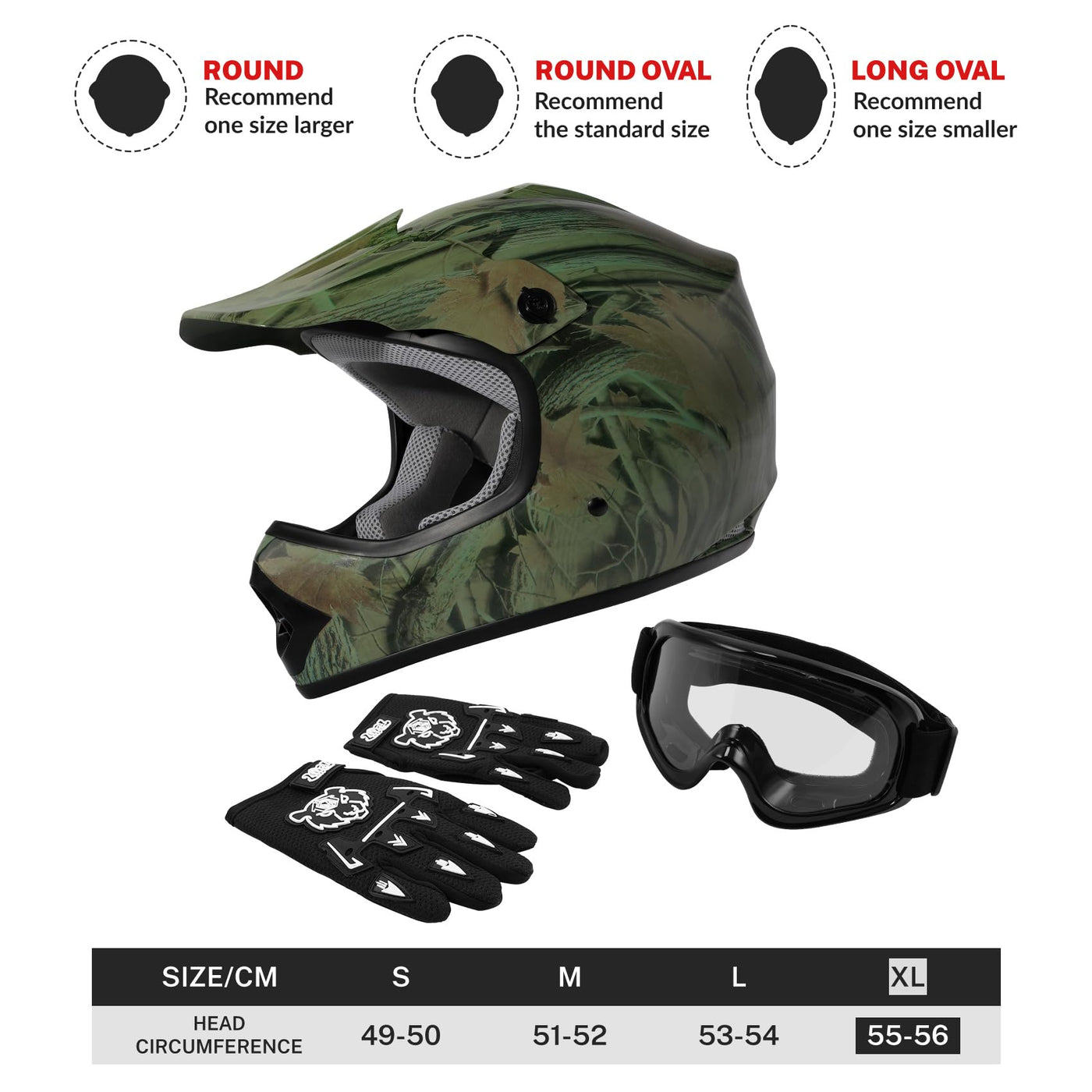 Tct-Motorparts Dot Youth Kids Motocross Atv Helmets Offroad Street Dirt Bike Go-Kart Bmx Mx Full Face Helmet Forest X-Large Size