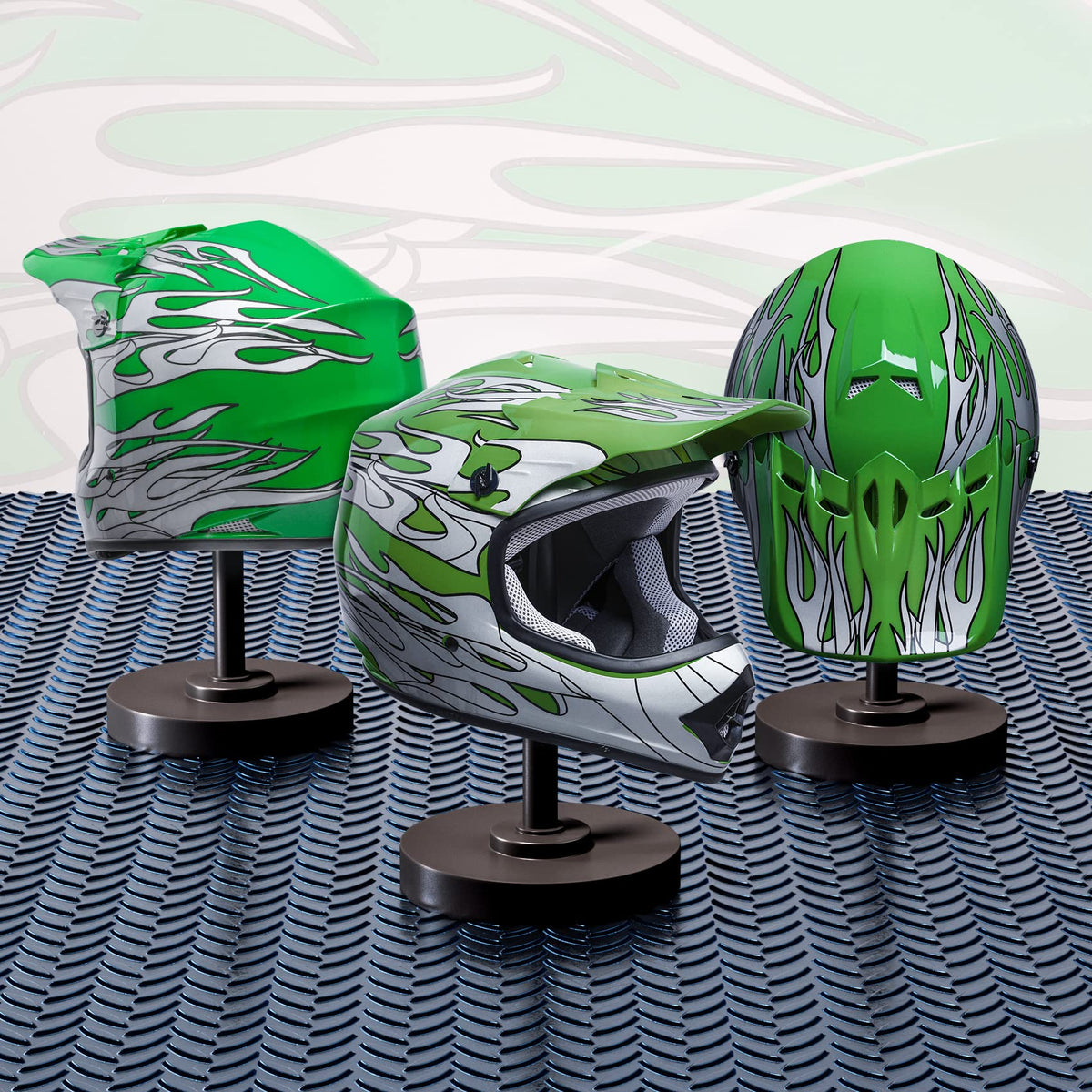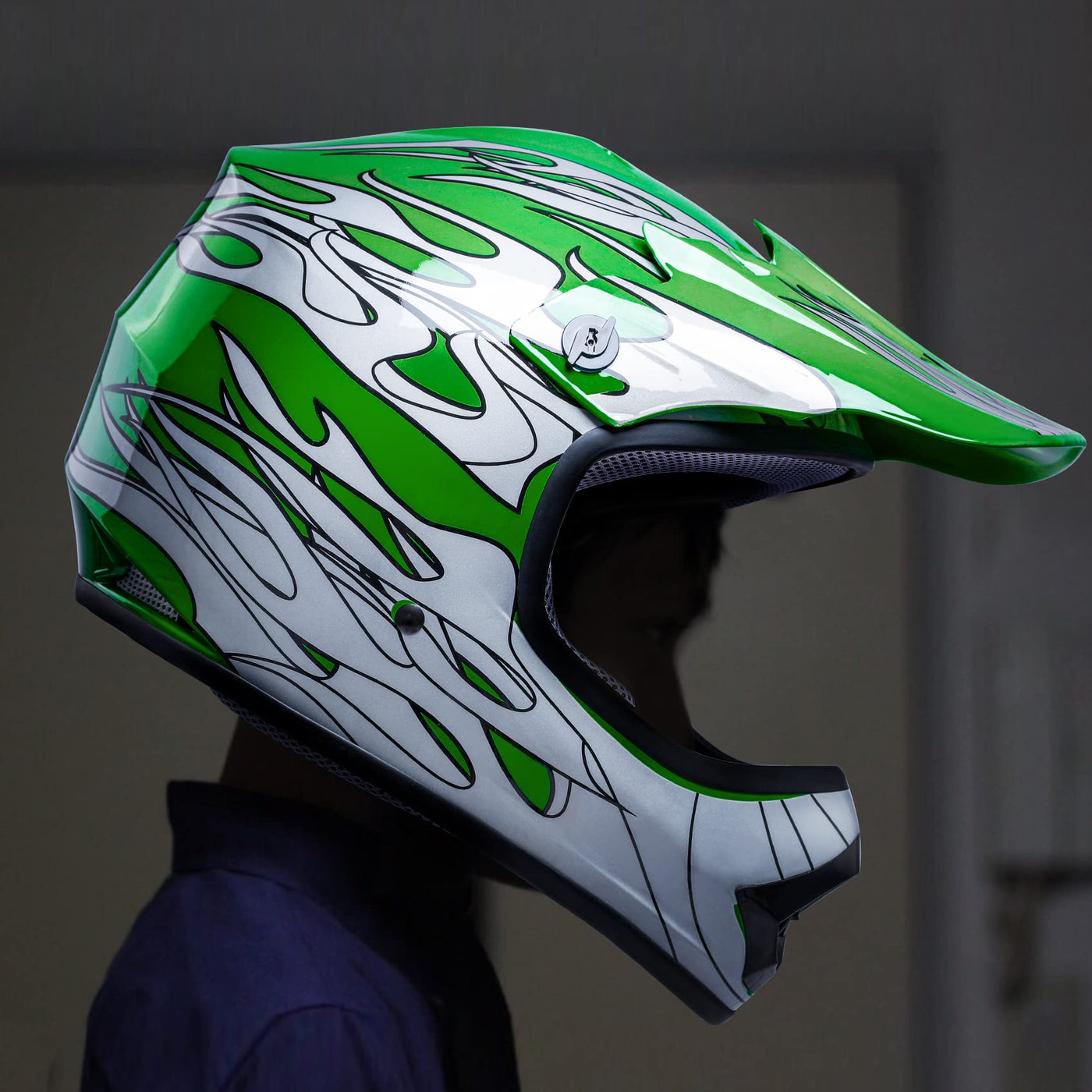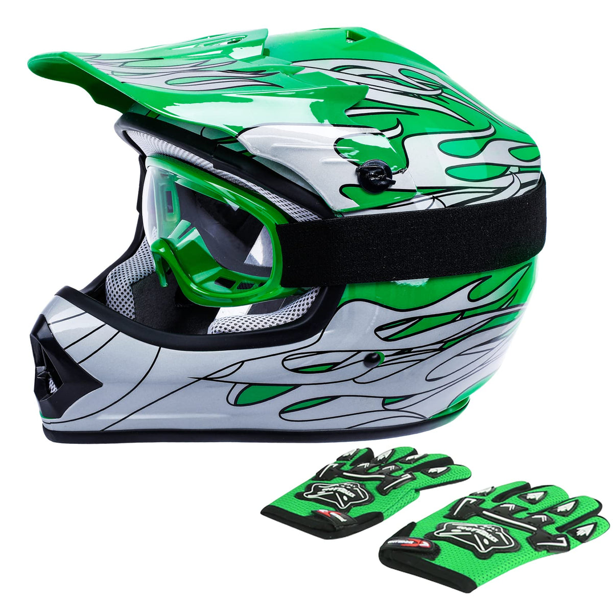 TCT-MT Youth Helmet MX+Goggles+Gloves Kids Green Flame Dirt Bike ATV Motocross Large